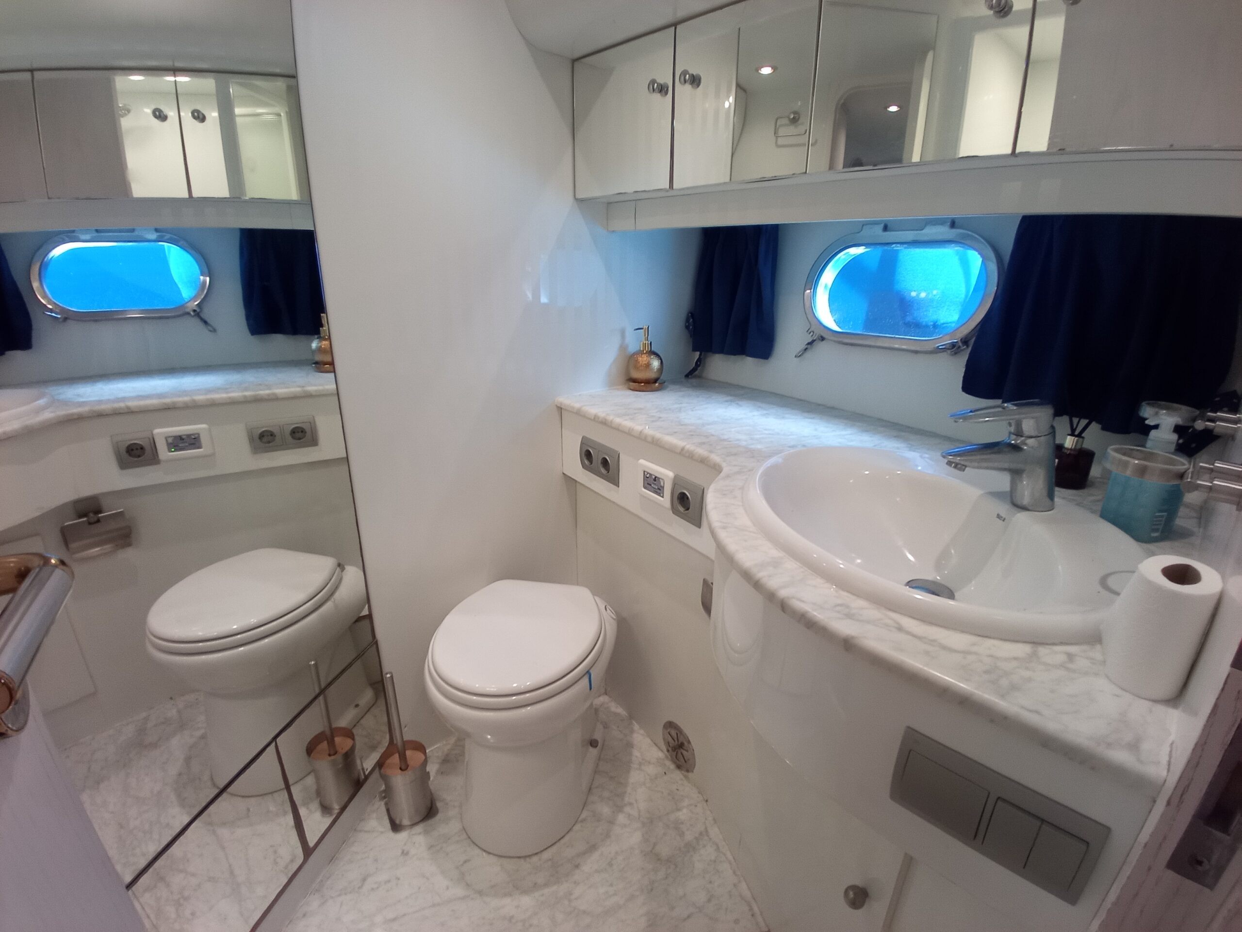 Seit dieser Zeit sind die Motoren nur etwa 50 Stunden gelaufen, da der Eigner die Yacht meistens als Hafenboot benutzt hat, deshalb auch die niedrige Stundenzahl.