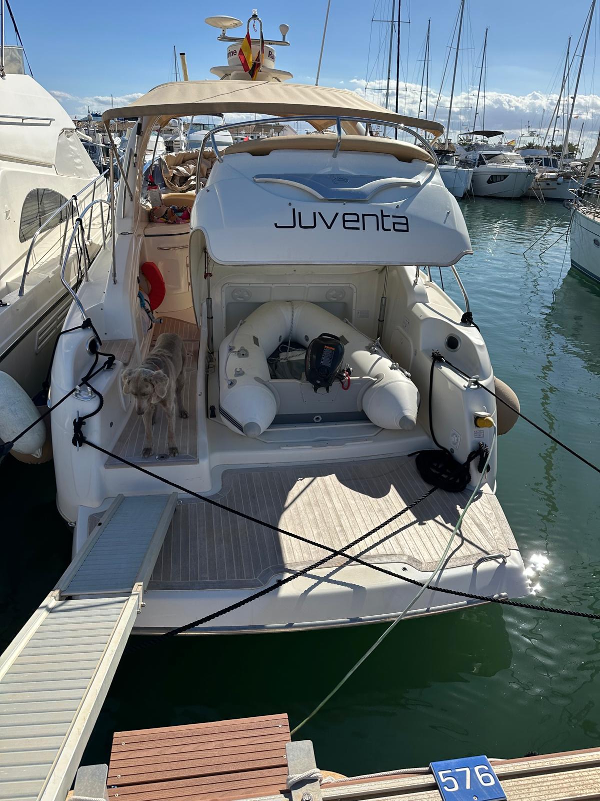 Ankerwinde ist mit Fernbedienung, es gibt eine elektrisch zu öffnede Garage am Bug für Beiboot und allen wichtigen nautischen Geräte.