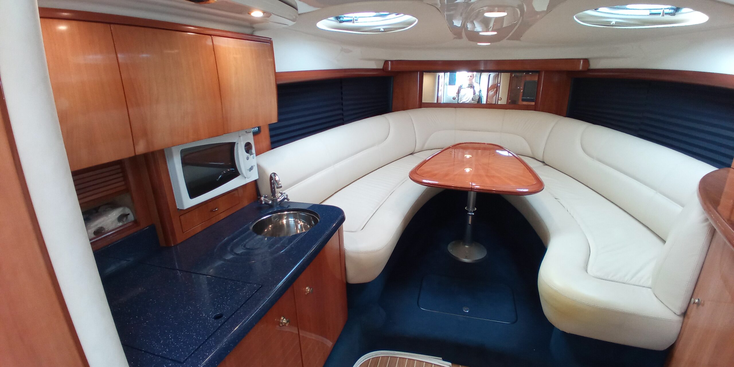 Das Boot ist für 10 Personen zugelassen, es hat eine Bugkabine mit Waschbecken.