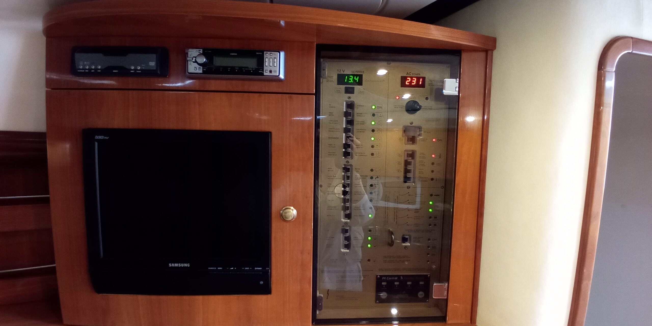 Badeleiter, Badeplattform integriert, CD-Player, Cocpit Lautsprecher, Cockpittisch, DVD-Player, Deckdusche, Farbfernseher,