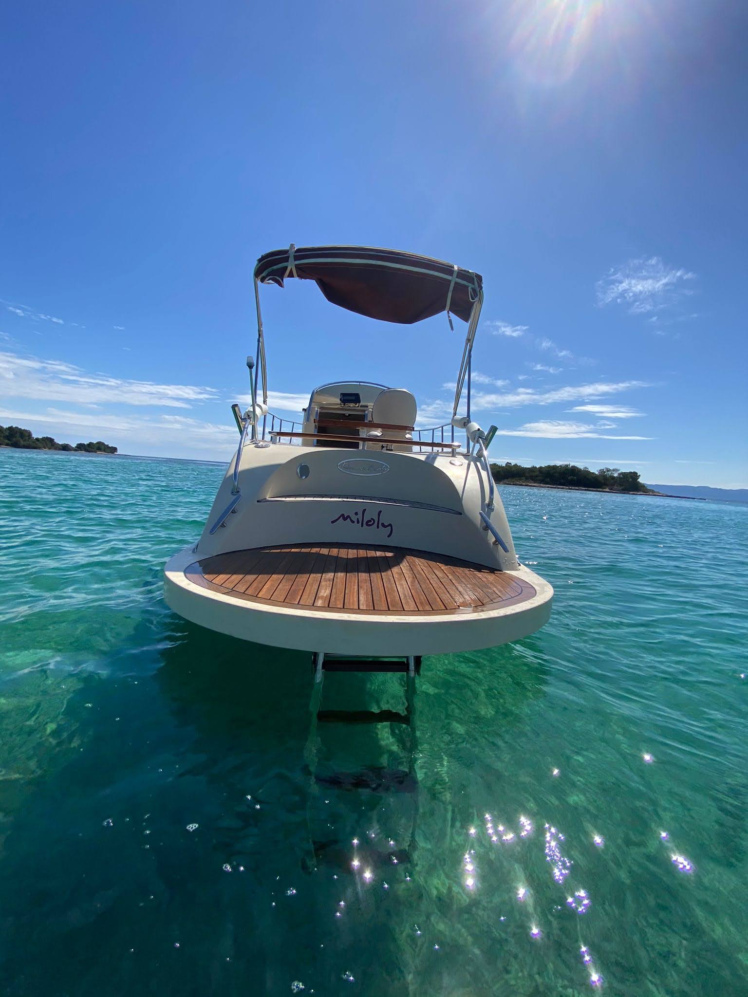 Extras: Außendusche, Badeleiter und große Badeplattform, große Sonnenliege, Sonnenverdeck