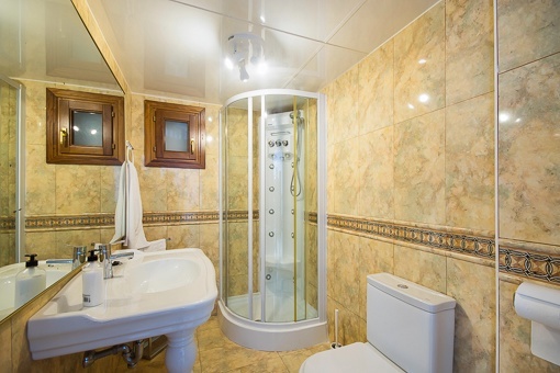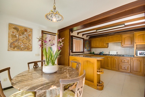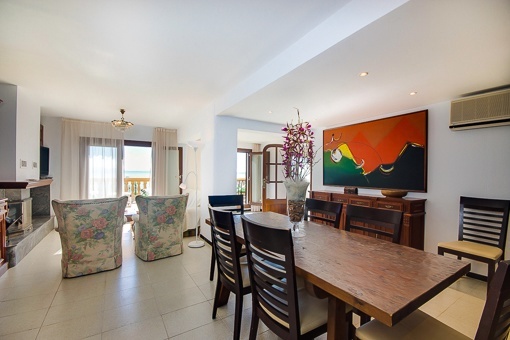 Die Villa bietet 4 Schlafzimmer, 3 Bäder, Wohn-Esszimmer mit Kamin und eine Küche mit Essbereich aufgeteilt auf 3 Etagen.