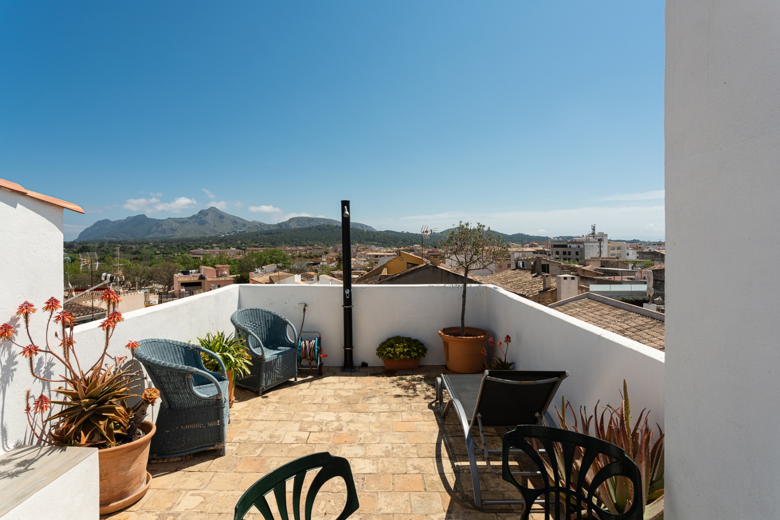 Auf dem Dach des Hauses befindet sich eine sonnige Dachterrasse mit Strom und Wasser, die eine wunderschöne Aussicht bietet.
