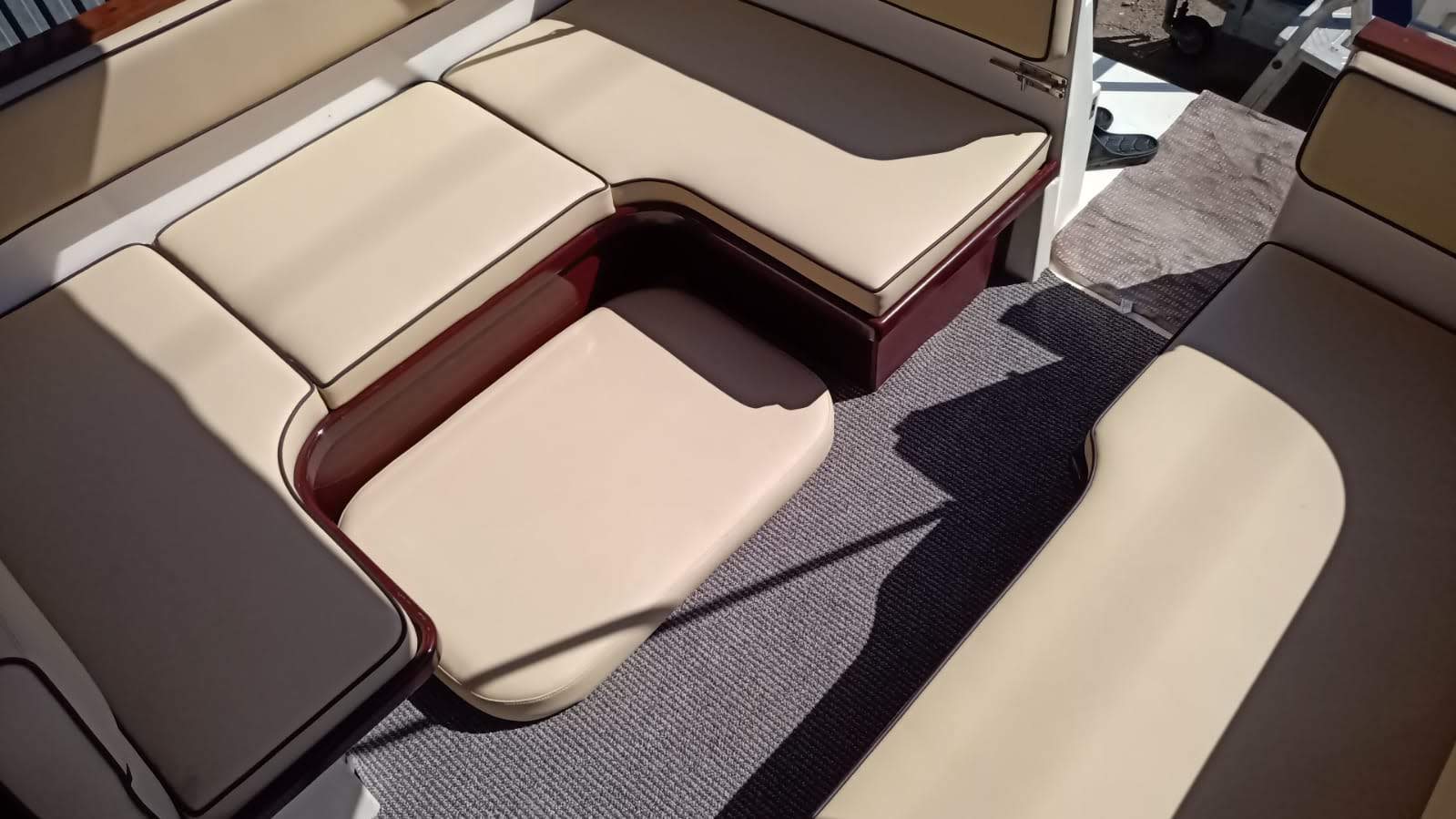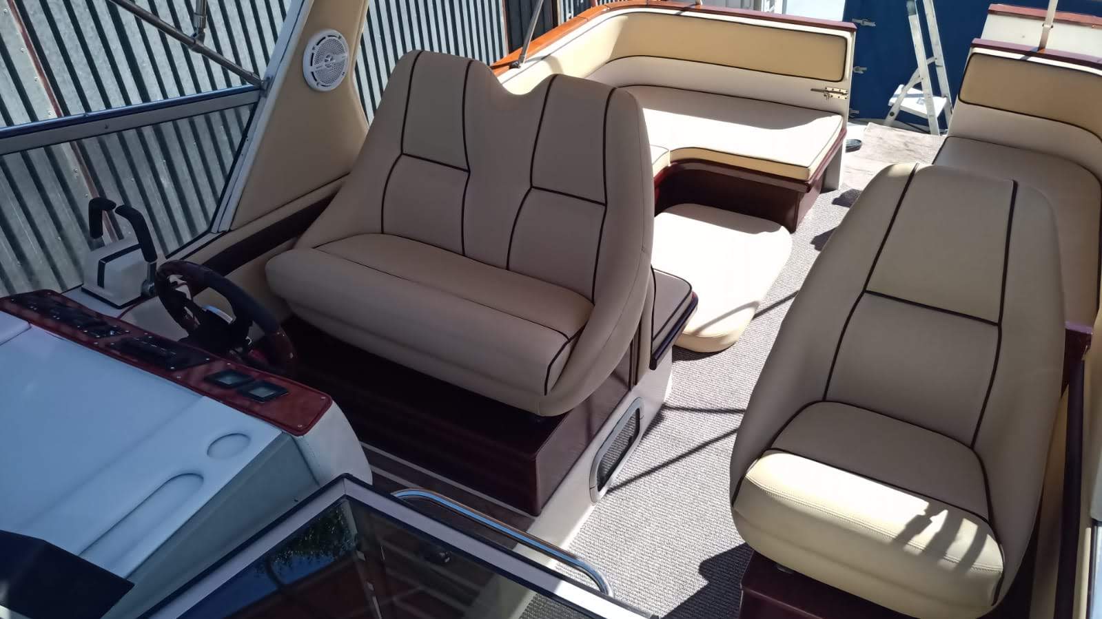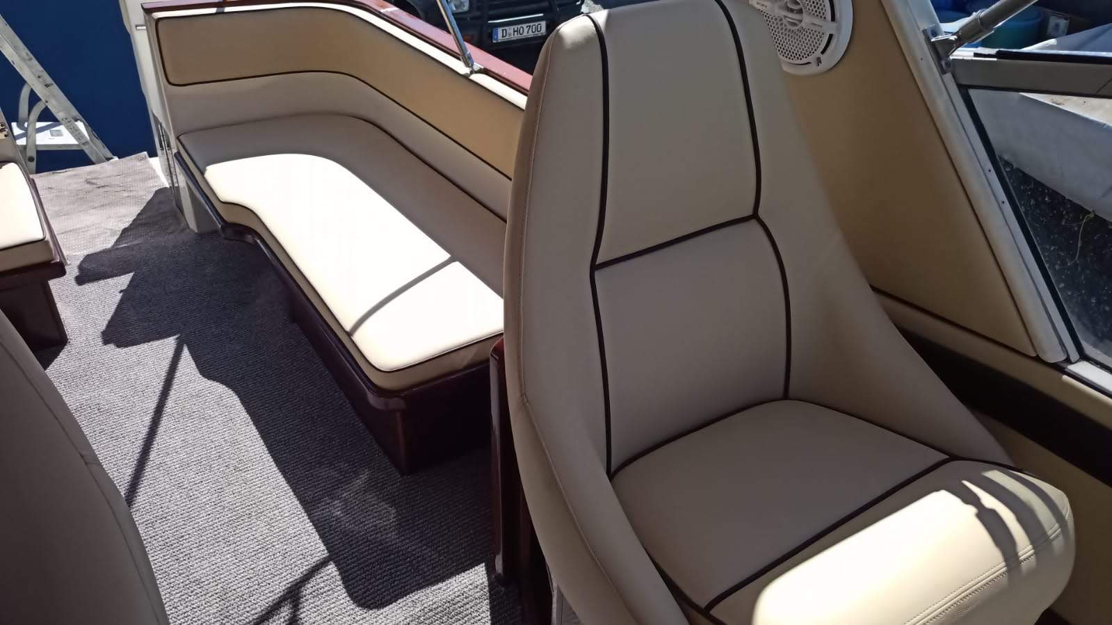 Die komplette Außenpolsterung wurde von einer Fachfirma neu gepolstert. Das Schiff hat eine neue elektrische Ankerwinde bekommen, Navigation die komplette Bordelektrik wurde erneuert mit Mastervolt Ladegeräte, neue Batterien, Zusatzbordbatterien Sicherungspanels, Landstromanschlüssel etc. etc. etc.