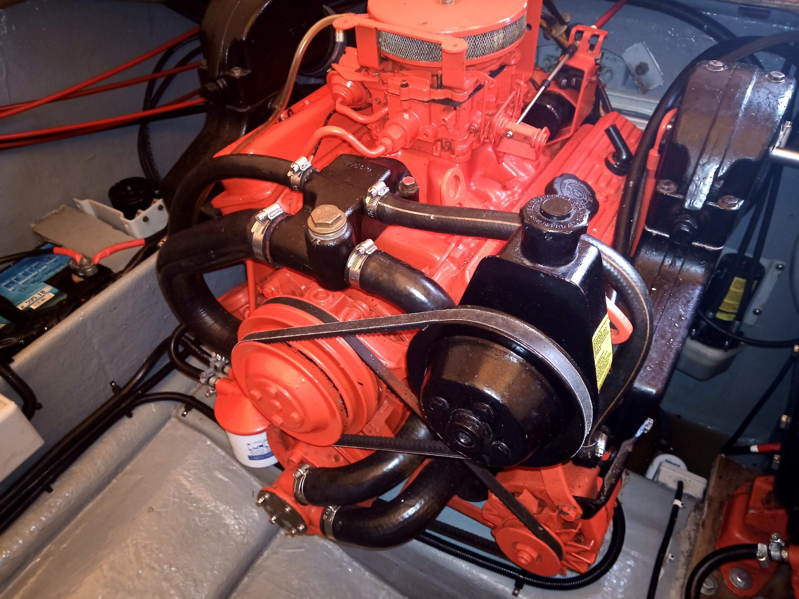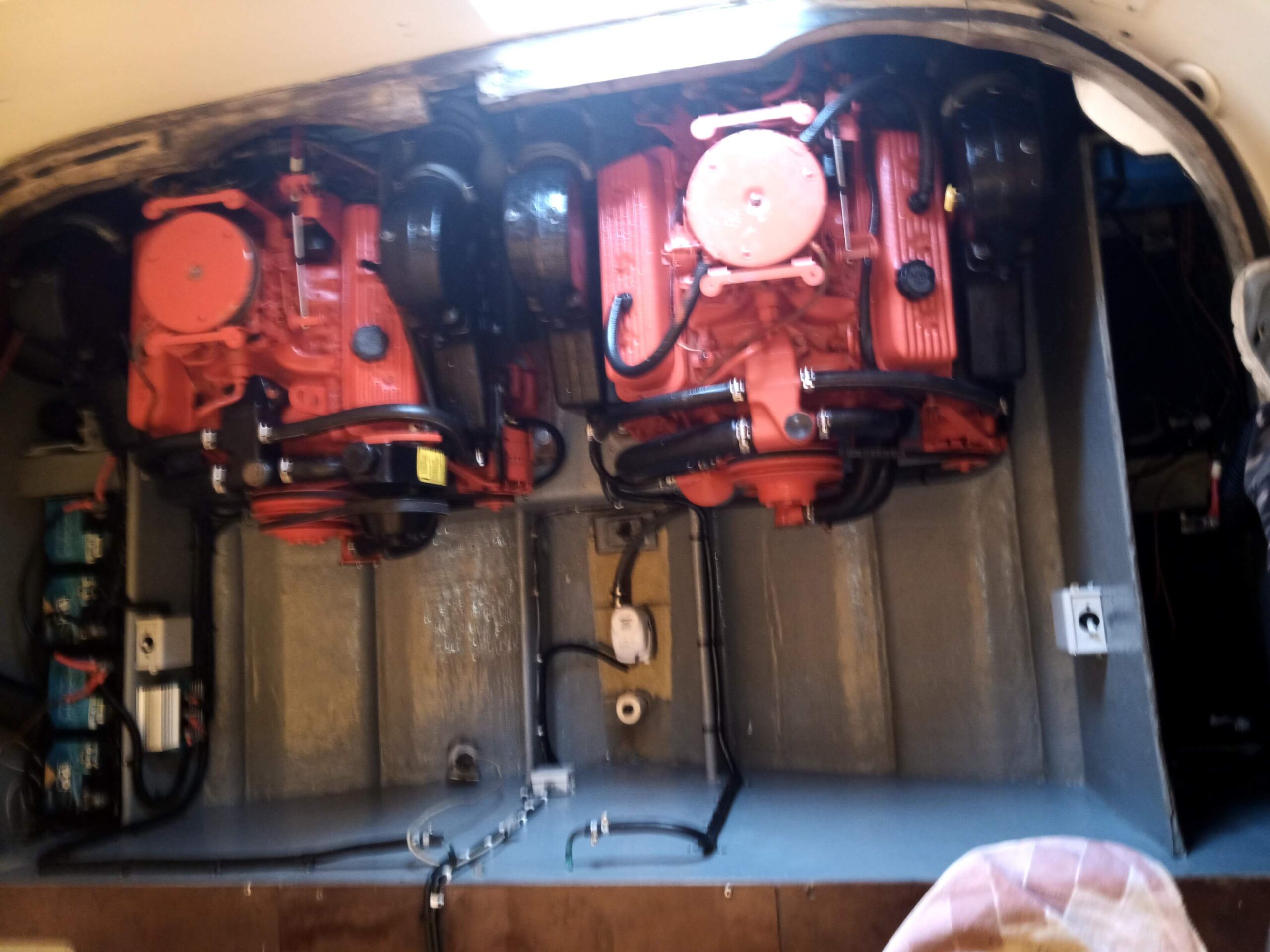 das komplette Unterwasserschiff neu mit 8 Schichten Epoxy beschichtet, danach 2x Primer und 2x Antifouling. Motoren wurden von einer Fachwerkstatt beide komplett überholt. Vergaser sind neu! Die Tankanlage wurde komplett gereinigt und mit neuen Kraftstofffiltern versehen.