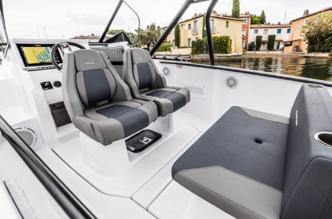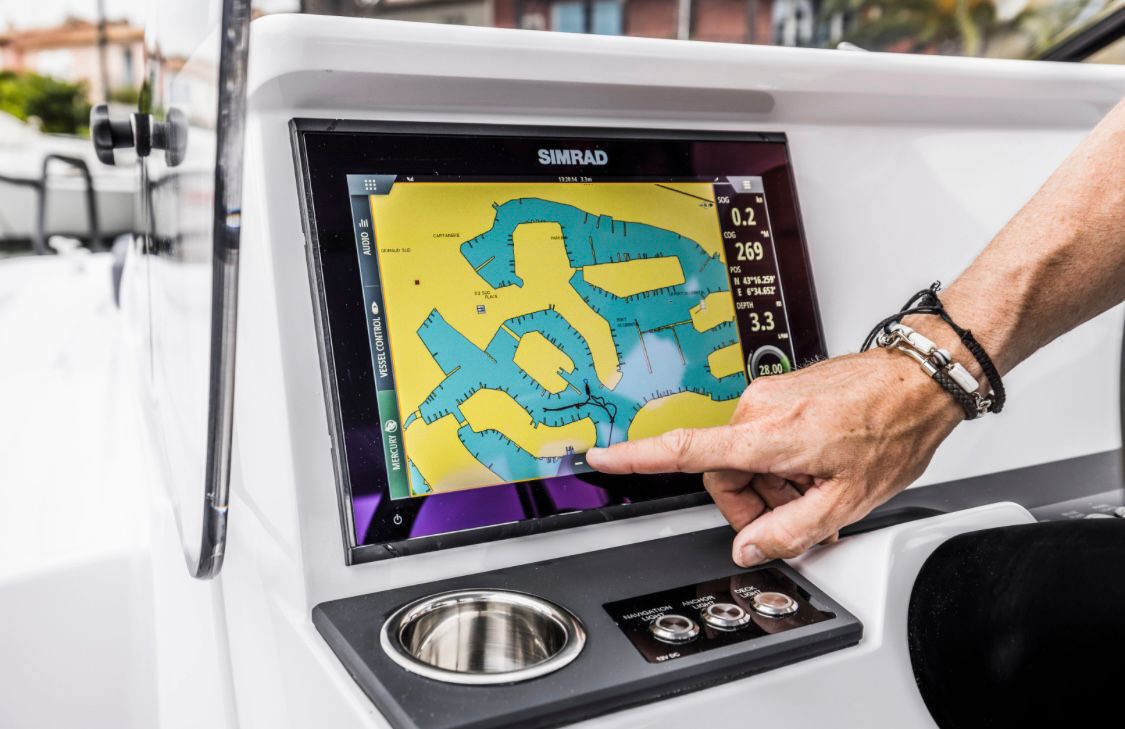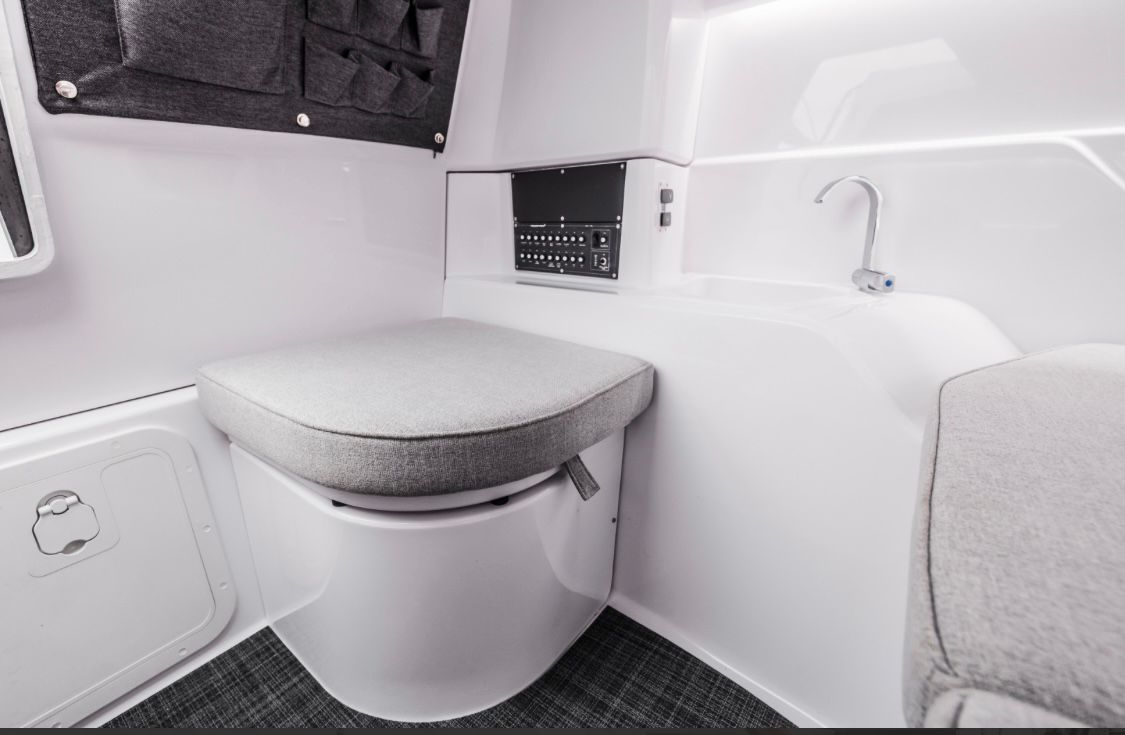 Ausgestattet mit einer Kabine, Toilette, Stero, Bluetooth, GPS, Bugstrahlruder, Kühlschrank mit Waser und alkohlfreie Getränke