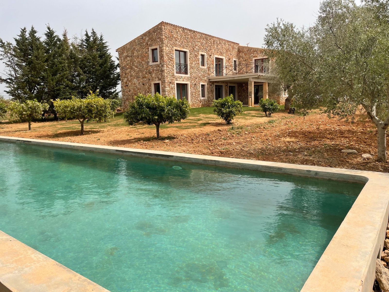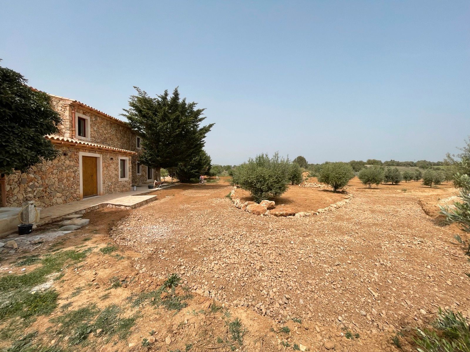 Das Grundstück von etwa 15.000 m² hat einen Olivenhain mit 270 Olivenbäumen, die im letzten Jahr eine Olivenölernte von 180 feinstem Olivenöl bescherten. Die rustikale Finca bietet eine bebaute Fläche von ca. 360 m² und wird im Sommer 2024 fertiggestellt sein.