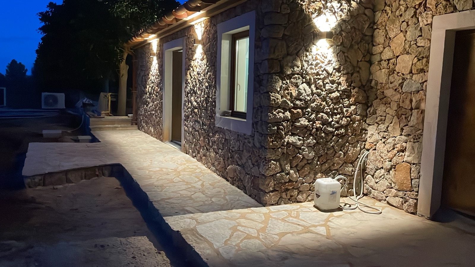 Ausstattung: komplett gedämmte Aussenfassade, Dach, Fenster und Glastüren mit 3-fach Verglasung. Beheizung der kompletten Wohnfläche über Fussbodenheizung, 10 kw Photovoltaik speist die Wärmepumpe. Alle Räume verfügen über Split Klimaanlagen. Auch Anschluss an den Stadtstrom.