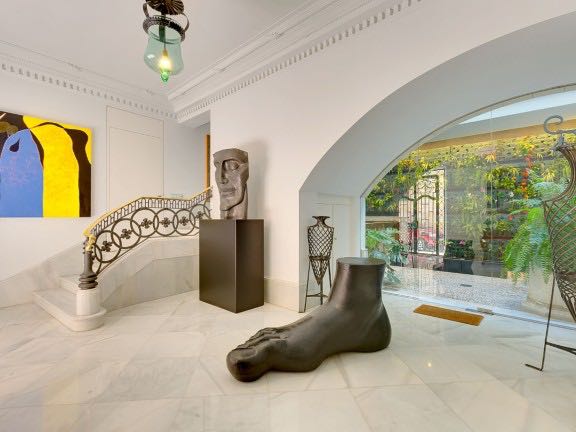In einer ruhigen Gegend in der Altstadt, in der Nähe des Bischofgartens, finden wir diesen spektakulären Palast aus dem neunzehnten Jahrhundert, der im Jahr 2010 mit hochwertigen Materialien renoviert wurde. Mit einer Wohnfläche von ca. 875m2, präsentiert sich dieses Anwesen mit einen großen hellen Eingang mit einem Innenhof der viel Licht spendet und einen kleinen Fischteich und einen wunderschönen vertikalen Garten einschliesst. Insgesamt sind 8 Suiten und 9 Badezimmer auf 4 Etagen verteilt und weiters findet man mehrere Wohnzimmer mit Kamin, zwei moderne und voll ausgestattete Küchen, ein Apartment das zum Beispiel für Gäste dienen könnte und des weiteren ein komplettes Studio mit Küche, das für Personal benützt werden könnte. Die zukünftigen Eigentümer dieser phantastischen Immobilie können ausserdem über einen Wellnessbereich mit beheiztem Pool, ein türkisches Hammam Bad und einen Fitnessraum verfügen. Das Highlight dieses einmaligen Hauses ist zweifelsohne die sonnige Terrasse von ca. 50m2, die eine spektakuläre Sicht auf das Meer, die Kathedrale und den Hafen von Palma bietet. Zudem enthält diese auch eine Sommerküche mit Grillbereich, die einem erlaubt schöne Abendessen in guter Gesellschaft an lauen Sommerabenden zu geniessen. Bemerkenswert sind auch die Einrichtungen und Geräte von höchster Qualität: Miele und Gaggenau Küche, Parkettböden, Schränke, Kamine, Klimaanlage / Heizung, Gas-Zentralheizung, doppelt verglaste Fenster, individuelles Alarmsystem auf jeder Etage und eine automatische Bewässerung. Ein Aufzug verbindet alle Ebenen und eine Garage mit Platz für 2 Autos runden dieses elegante Objekt perfekt ab.