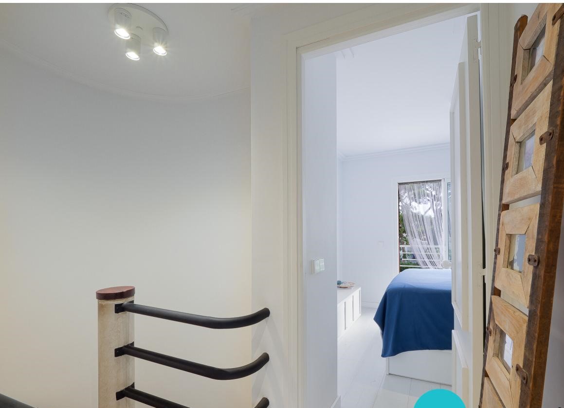 Im ersten Stock befindet sich der Schlafbereich mit zwei Doppelschlafzimmern und einem kompletten Badezimmer. Eines der Zimmer verfügt über einen Balkon mit Meerblick. Die Dachterrasse eignet sich für einen Chill-Out-Bereich.