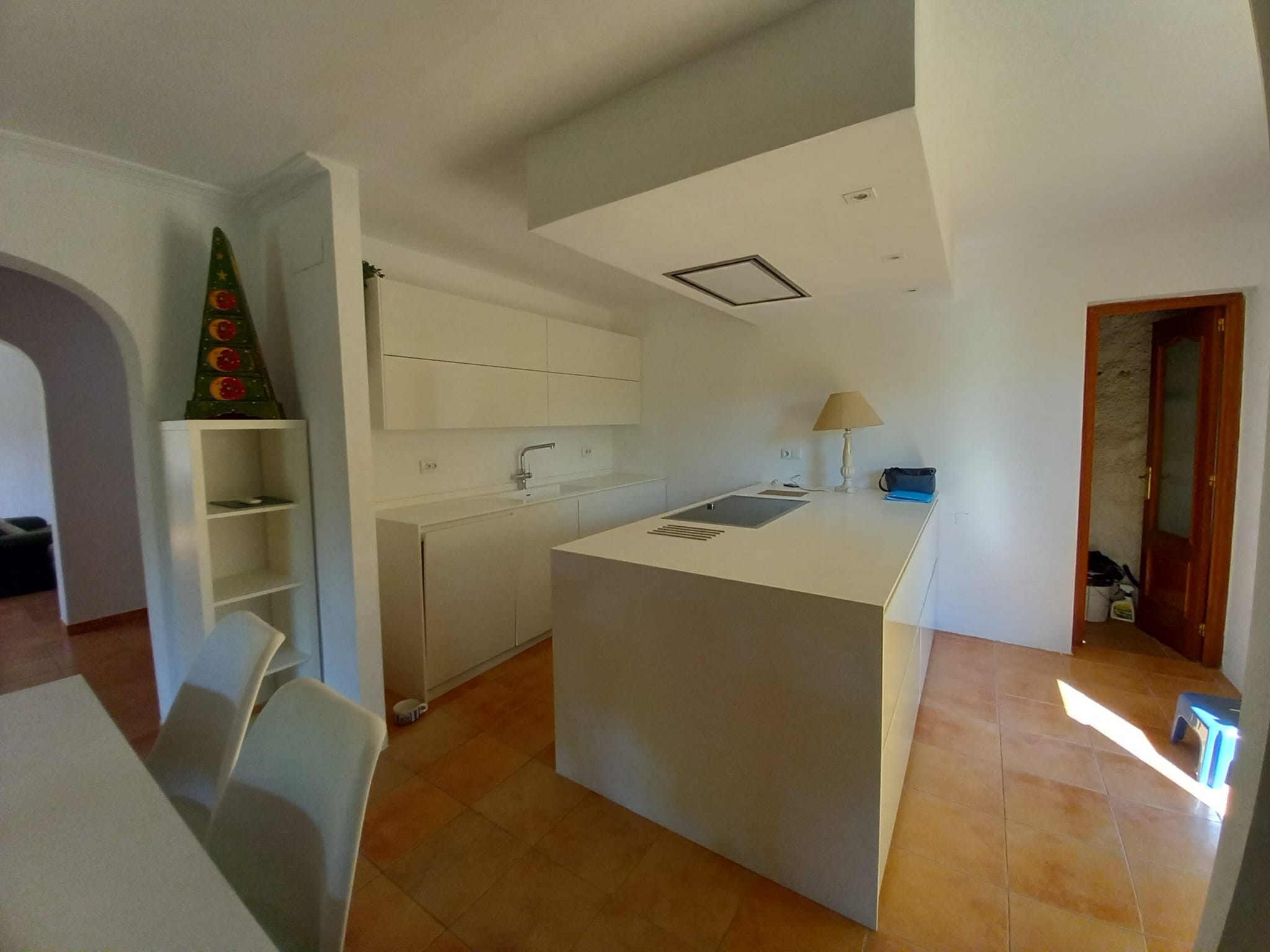 Erdgeschoss: geräumiges und helles Wohnzimmer mit Kamin. Eine hochwertig möblierte und ausgestattete Küche mit Kochinsel, die viel Platz bietet. Es gibt mehrere Zugänge zum Garten und zur überdachten Terrasse. Der gesamte Außenbereich ist von einem gepflegten Garten und viel Grün umgeben. Gäste WC.