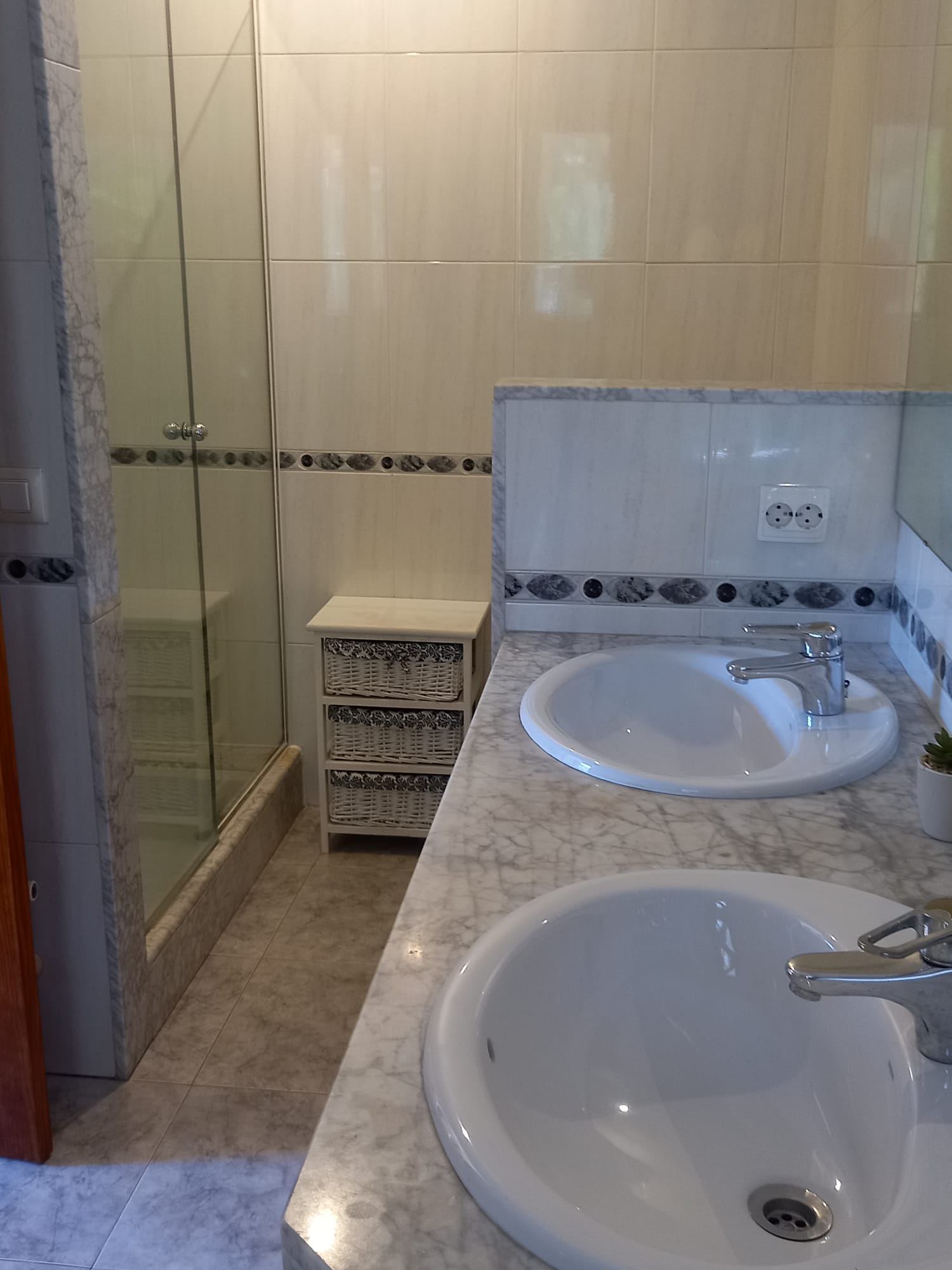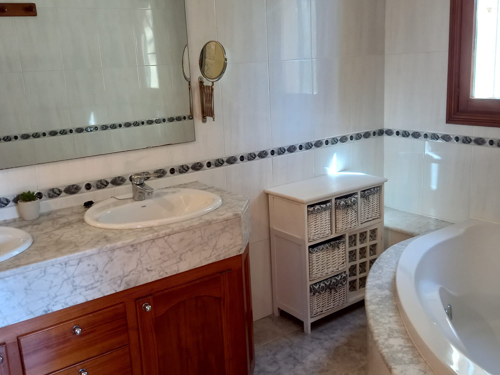 Erster Stock: zwei große Schlafzimmer und zwei geräumige Badezimmer, eines davon en suite. Balkone mit schöner Aussicht.