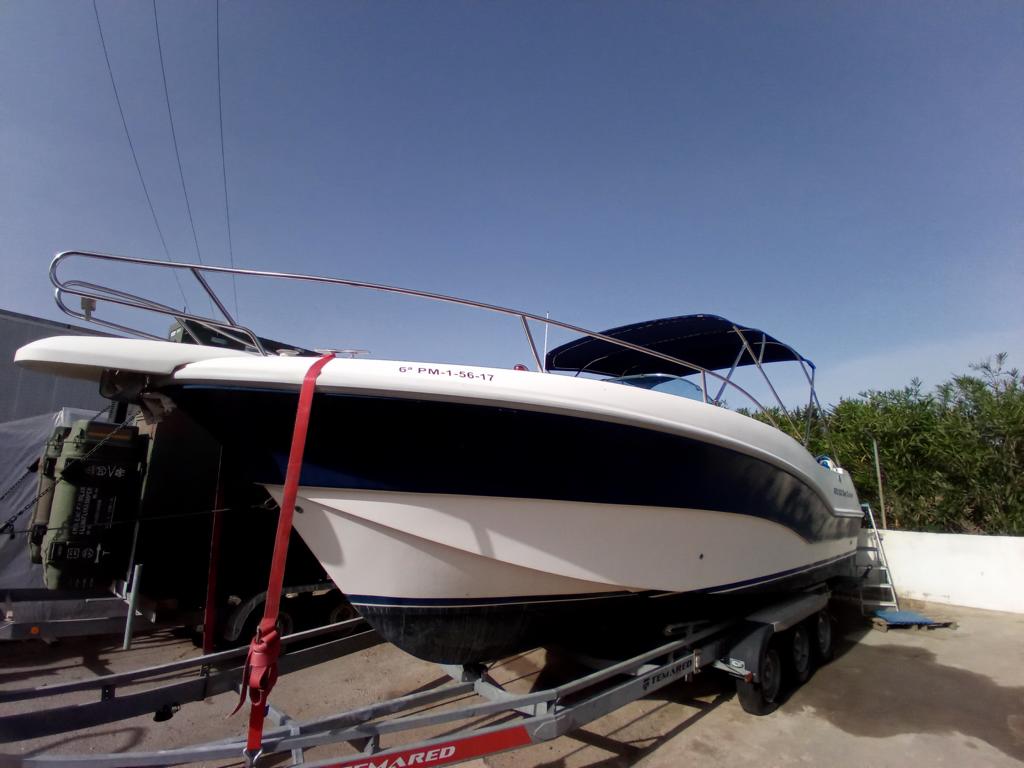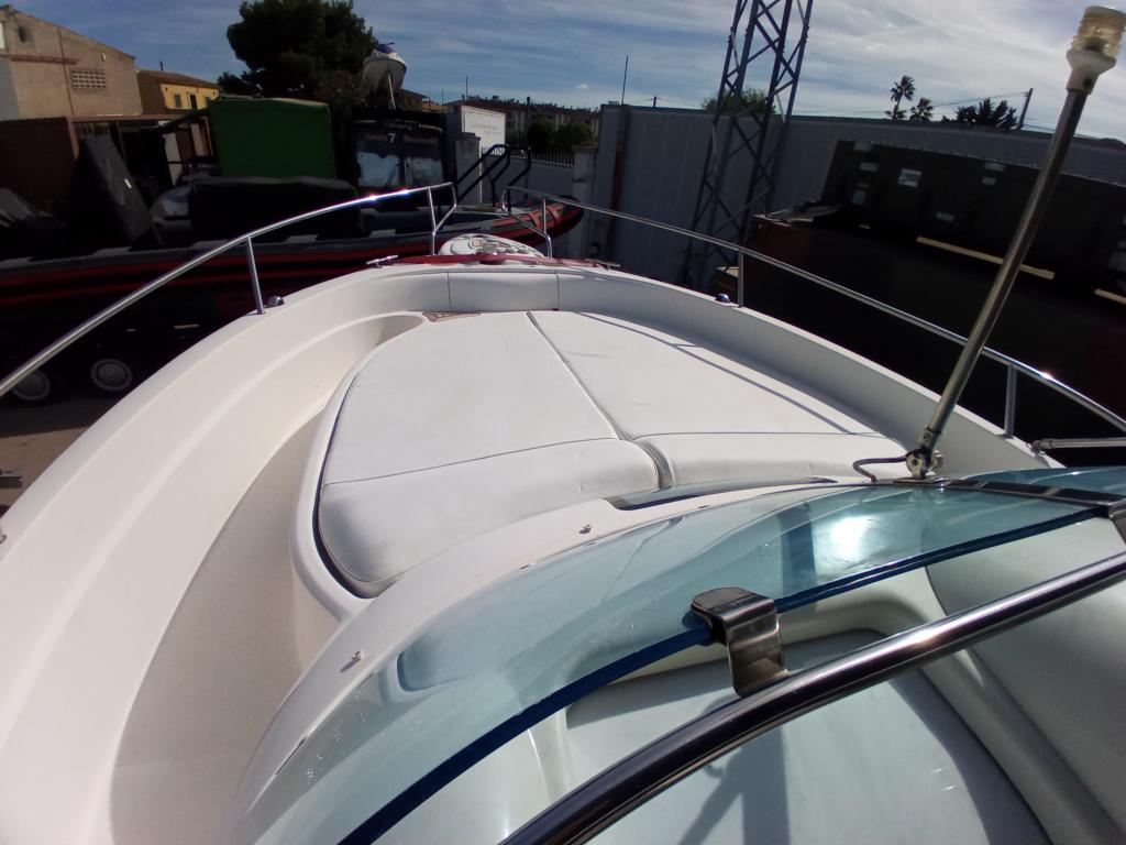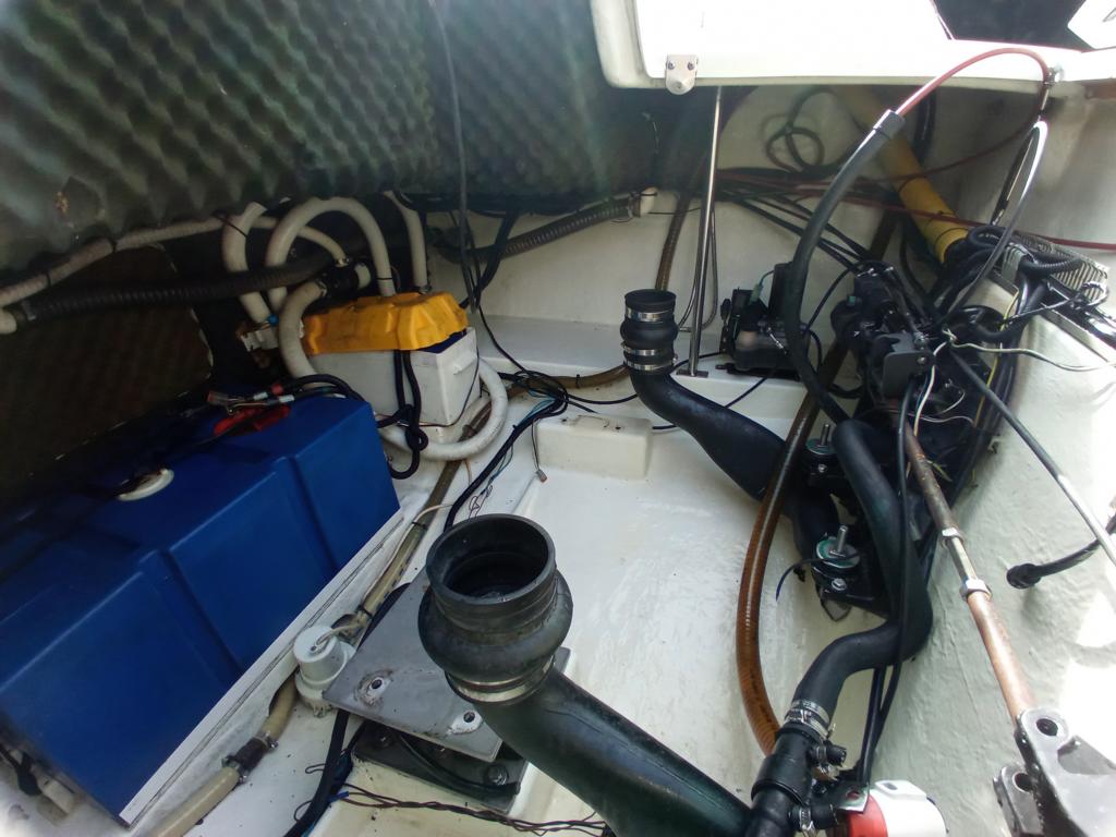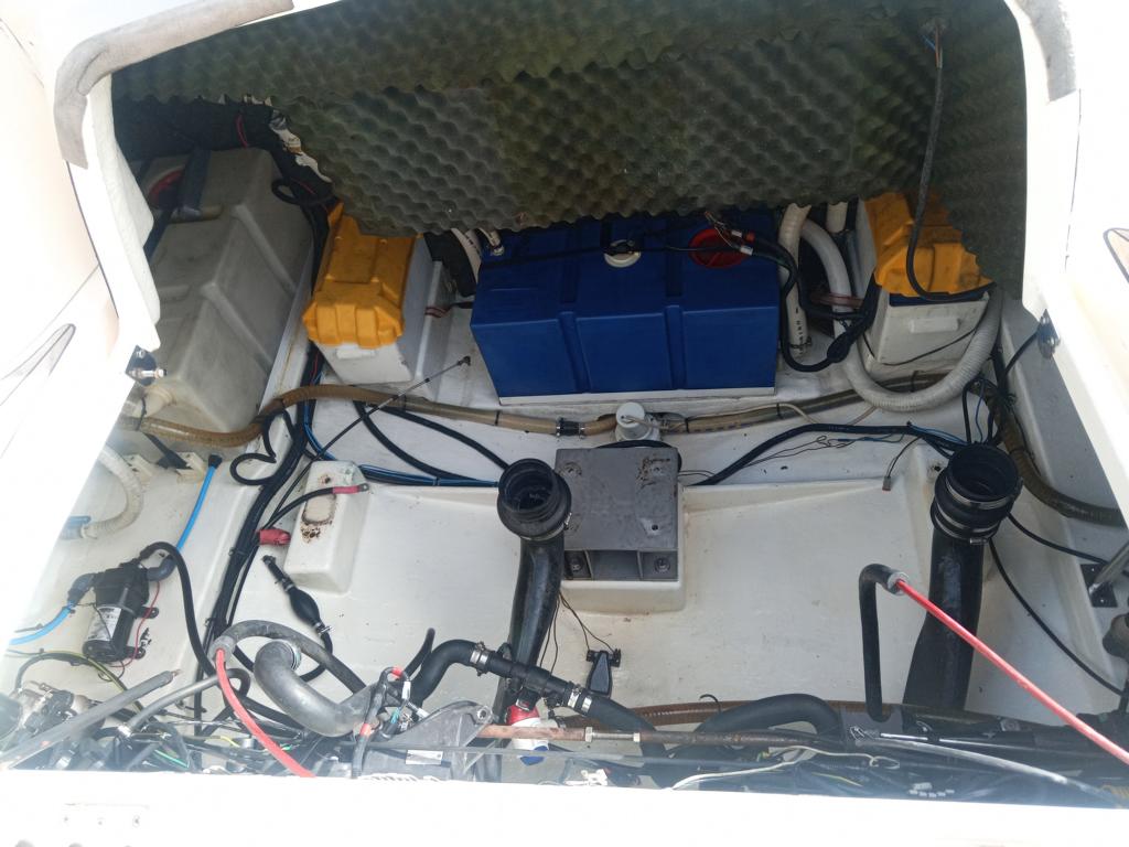 Batterien sind defekt, alle Polster sind vorhanden und im guten Zustand, Im Innenbereich sind die Polster etc. auch in Ordnung, das Bimini Top ist auch ok, Sonnenpolster sind auch OK, ein Abdeckpersenning für Cockpit und Steuerstand ist auch vorhanden.