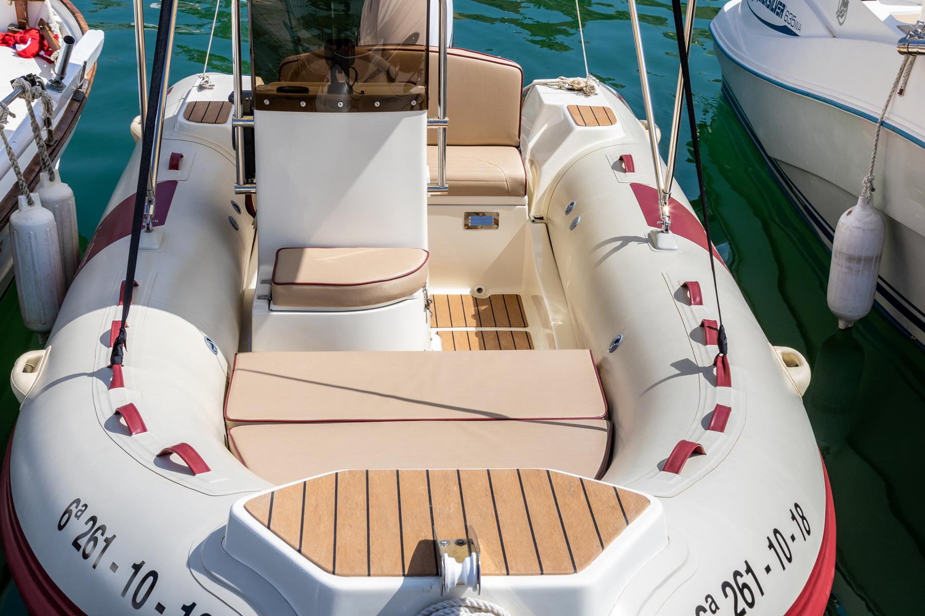 Boot hat eine Sonnenliegen im Bugbereich und Sitzmöglichkeiten, ideal für Tagesausfahrten und Wassersport für bis zu maxi. 8 Personen, je nach Gewicht!!!