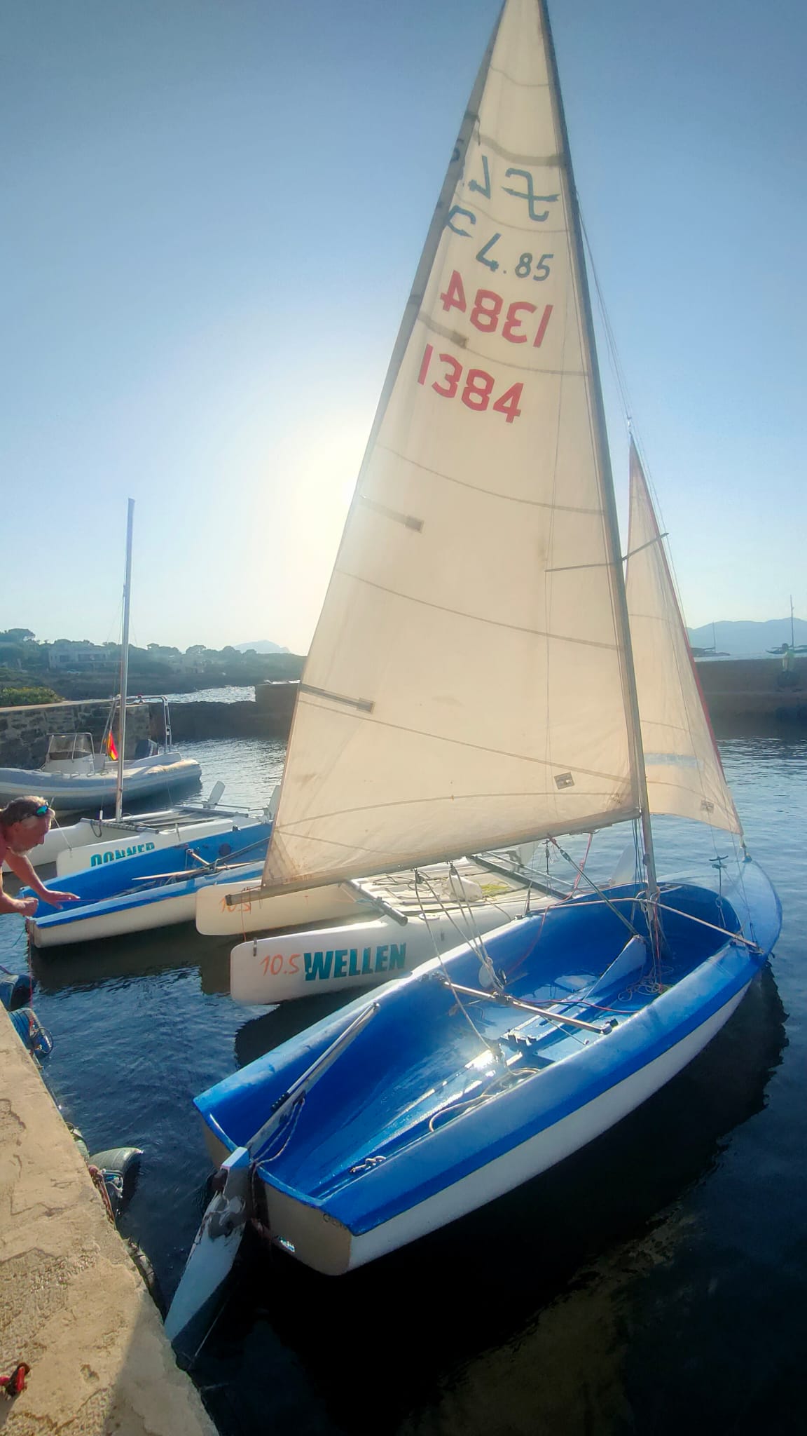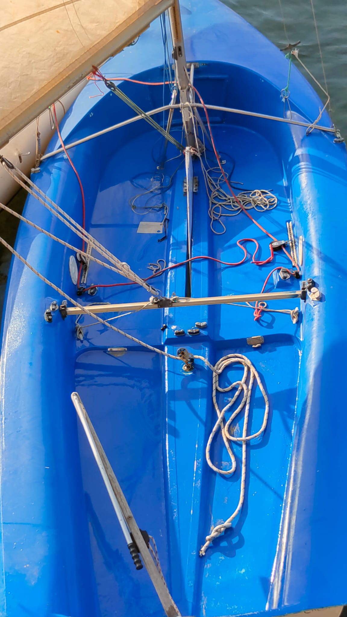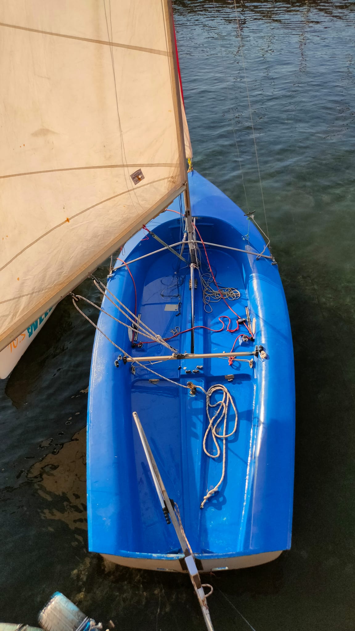 verkauft wird ein Segelboot mit Segel Mast und Zubehör