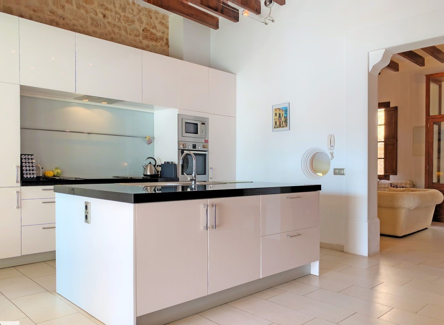 Ein luxuriöses Haus im typisch mallorquinischen, herrschaftlicher Stil, mit hohen Decken, sichtbaren Balken und Steinmauern aus Sandstein, so charakteristisch für die Häuser von Alcudia. Zentralheizung, mit Fußbodenheizung im Erdgeschoss und Heizkörpern im Rest des Hauses, alles mit Gasölbeheizungl. Aluminiumfenster mit Doppelverglasung, Klimaanlage im Studio und im Büro, sowie Vorinstallation in den restlichen Räumen. Das Haus hat Brunnenwasser für die Pflege von Garten und Pool.