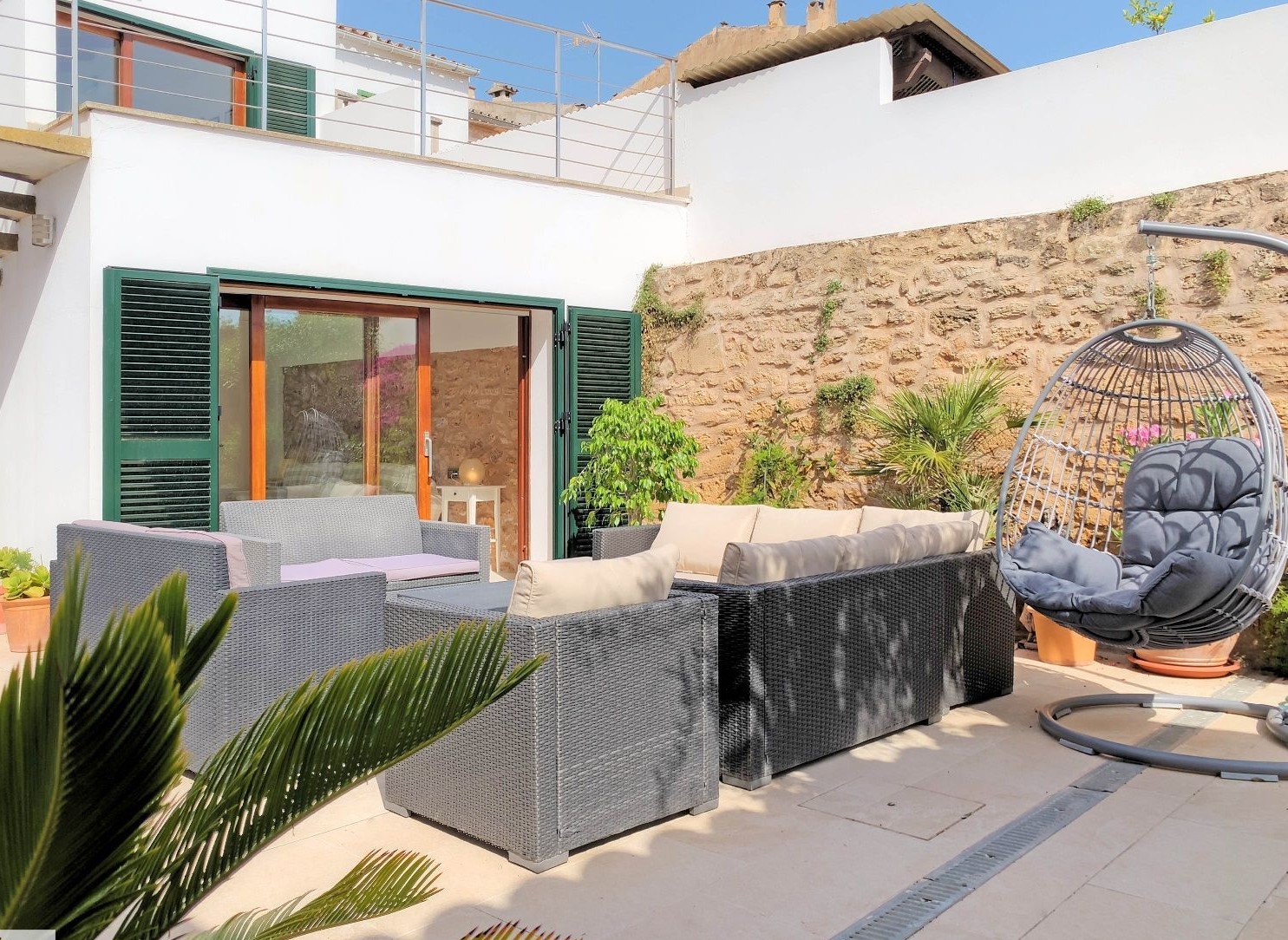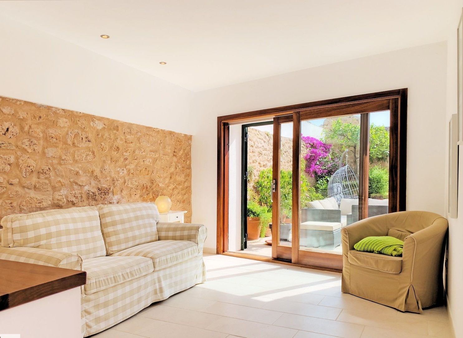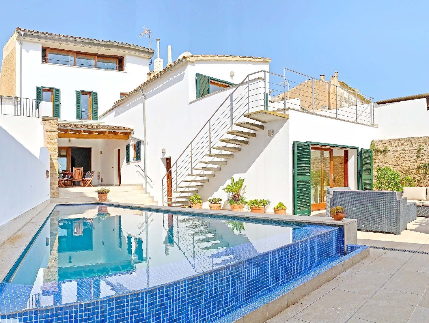 Eines der besten Häuser in der Altstadt des schönen Ortes Alcudia. Das Haus besteht aus 3 Etagen,- im Erdgeschoss, im Hauptgebäude, finden wir ein wunderschönes Wohnzimmer, neben dem Eingang, mit einem fantastischen schmiedeeisernen Kamin.. Dieser Raum führt zu einer schönen Kücheninsel, mit einem großen Essbereich. Von diesem Raum aus gelangt man über eine schöne überdachte Veranda in den Erholungsbereich, wo man den schönen Pool genießen kann. Neben der Veranda ein Gäste-WC, ein Maschinenraum und eine Waschküche. Neben dem Pool befindet sich ein komplettes Gästestudio mit eigenem Bad, einem Kleiderschrank und einer kleinen ausgestatteten Küche. Die Terrasse neben diesem Studio ist wunderbar, ideal für angenehme Abende am Pool. Auf der Rückseite befindet sich eine geräumige Garage. Vom Poolbereich und durch eine Außentreppe hat man Zugang zu einer Sonnenterrasse und ein Zimmer wurde in ein Büro umfunktioniert.