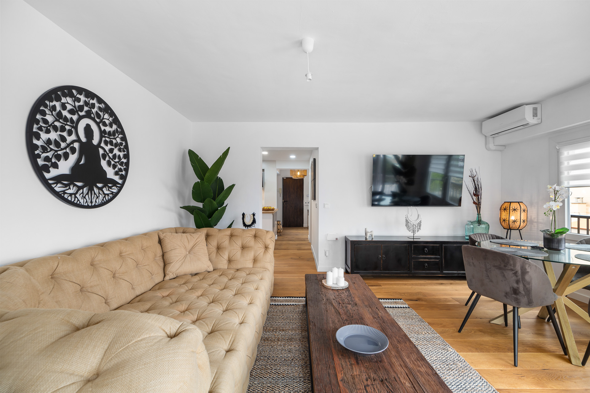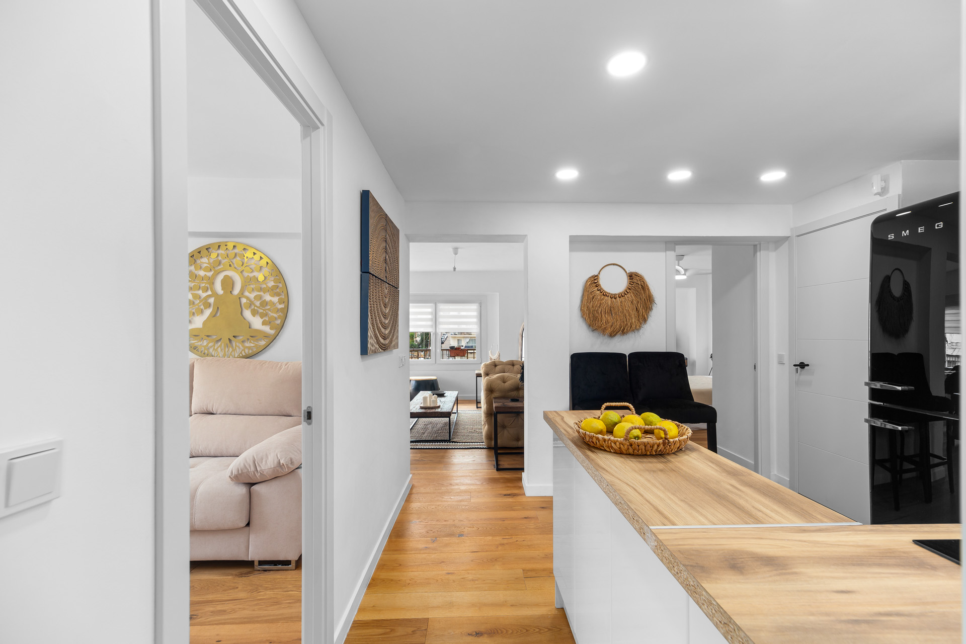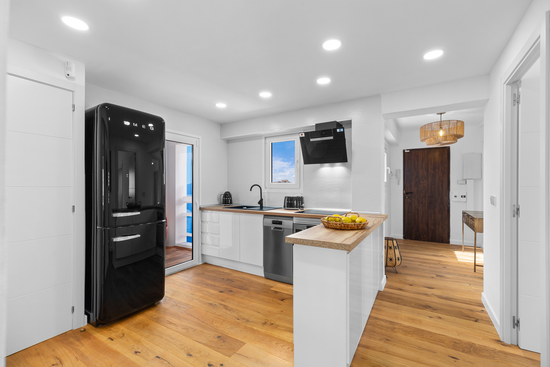 Besichtigen Sie ihr bezugsfertiges neues Zuhause. Vollständig renovierte Wohnung nur wenige Meter vom Strand der Playa de Palma entfernt und die sich durch ihre Wärme und Funktionalität auszeichnet. Drei geräumige und helle Schlafzimmer, ideal für Familien oder zur Nutzung als Büro. Ein gemütliches und schickes Wohnzimmer, das zum Herzstück der Wohnung wird und zum Entspannen einlädt. Ein großes BRETZ-Sofa sorgt für unschlagbaren Komfort. Die offene Küche ist mit Geräten von SMEG, AEG und Bosch ausgestattet und verbindet Design und Effizienz. Die Massivholzböden bringen Eleganz und Komfort in jeden Raum. Die Wohnung wurde mit hochwertigen Möbeln ausgestattet, die Wärme und Stil in den Raum bringen. Obwohl die Umgebung sehr ruhig ist, wurden hochwertige Schüco-Fenster verwendet, die eine hervorragende Wärme- und Schalldämmung bieten. Das Bad ist mit Elementen von Villeroy und Boch sowie Hansgrohe ausgestattet.
