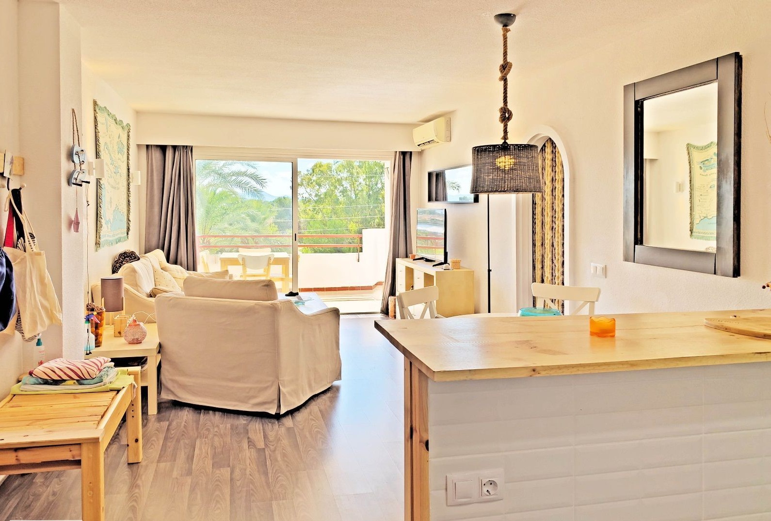 Diese sehr hochwertig und modern renovierte Wohnung befindet sich in einem Wohnkomplex in Port Alcúdia mit gemeinschaftlichen Gärten, Tennisplätzen und Pool. Die Wohnung verfügt über 2 Doppelschlafzimmer, ein Badezimmer, eine voll ausgestattete Küche und ein helles, geräumiges Wohnzimmer mit Zugang zur Terrasse. Von dieser geniesst man einen schönen Blick auf den Pool, den See (Lago Menor) und auch seitlich etwas auf das Meer. Die Wohnung ist mit Klimaanlagen ausgestattet und doppelverglasten Aluminiumfenstern. Der Strand befindet sich in unmittelbarer Nähe, ebenso wie das quirlige Zentrum von Alcúdia mit seinen kleinen Geschäften, Bars und Restaurants.