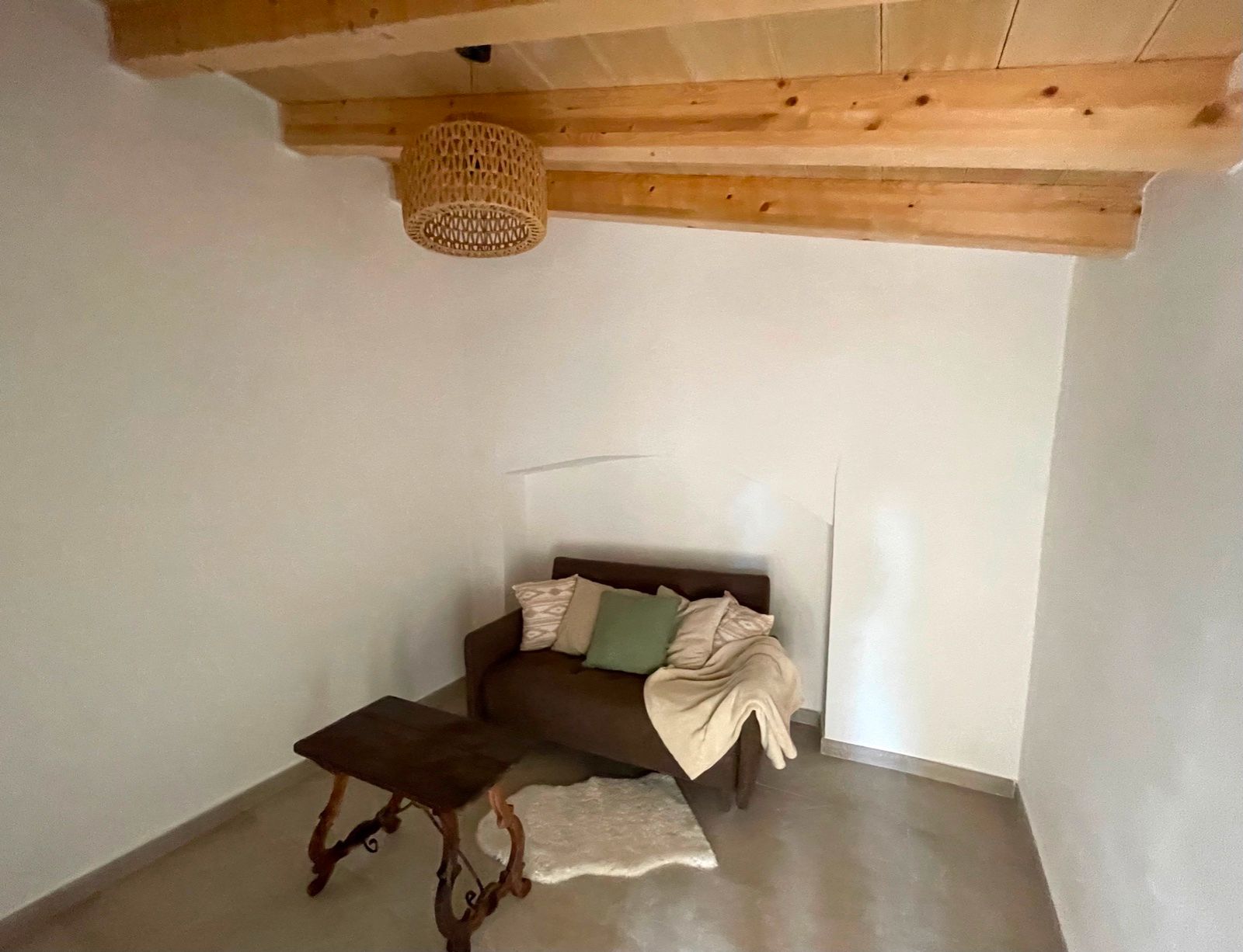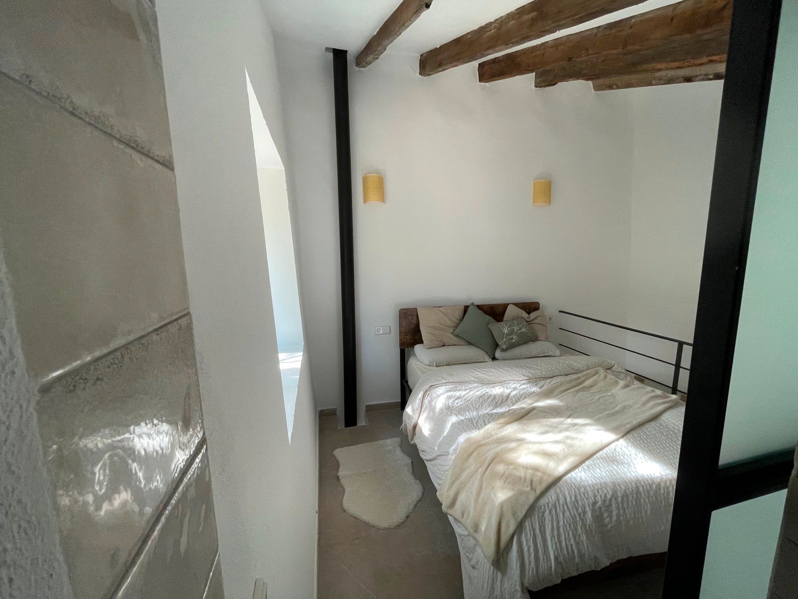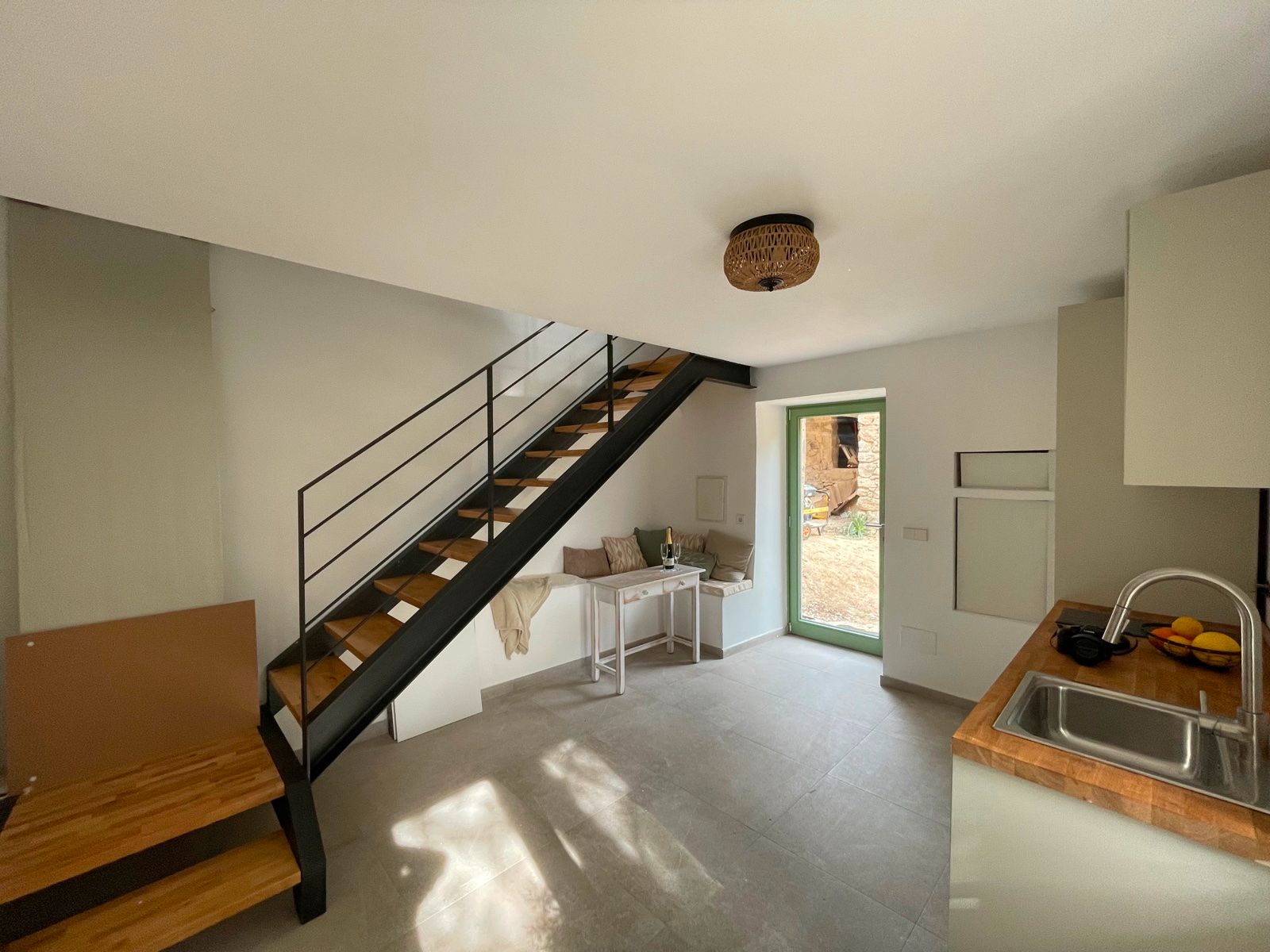 Das Haus selbst besteht aus einem offenen Wohnraum mit Küche und einem Schlafzimmer im ersten Stock mit Badezimmer. Es gibt ein zweites Zimmer im Gebäude nebenan, das als zweites Schlafzimmer, Gästezimmer oder Büro genutzt werden kann. Es gibt auch einen alten Backofen, der als Lagerraum dienen könnte. Die Immobilie wird komplett möbliert angeboten, das auch den Kamin mit einschliesst.