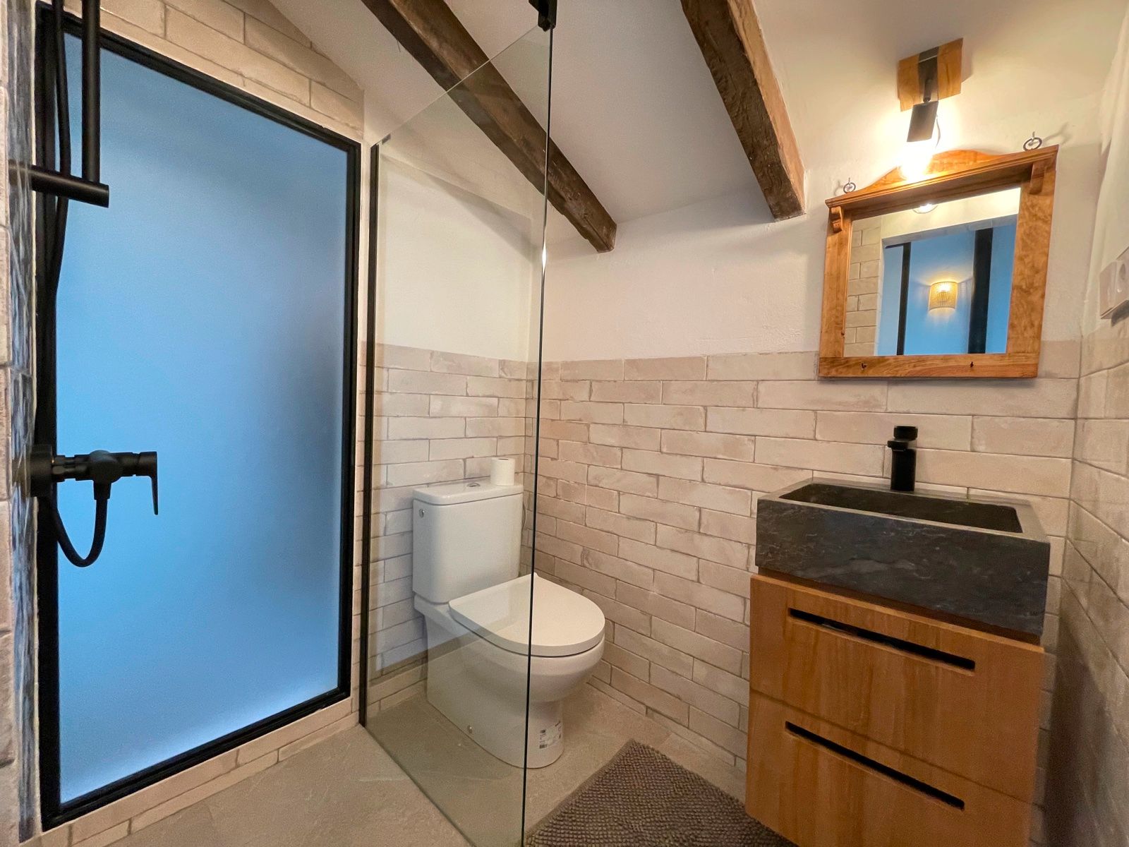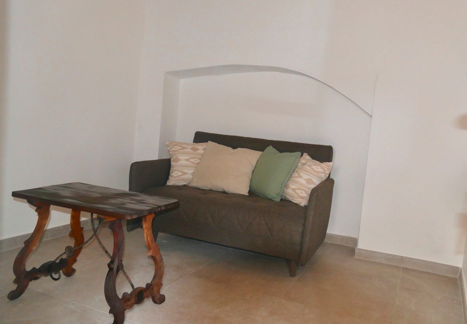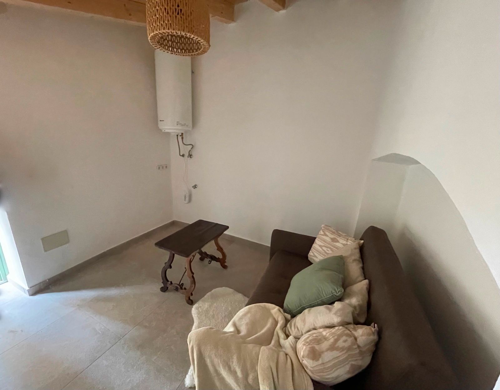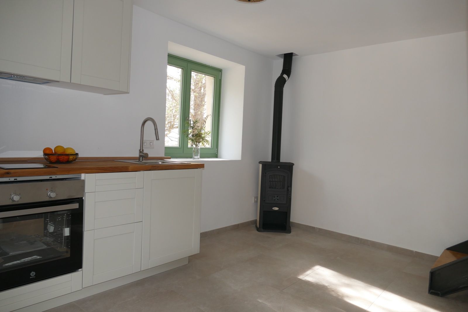 Das Haus selbst besteht aus einem offenen Wohnraum mit Küche und einem Schlafzimmer im ersten Stock mit Badezimmer. Es gibt ein zweites Zimmer im Gebäude nebenan, das als zweites Schlafzimmer, Gästezimmer oder Büro genutzt werden kann. Es gibt auch einen alten Backofen, der als Lagerraum dienen könnte. Die Immobilie wird komplett möbliert angeboten, das auch den Kamin mit einschliesst.