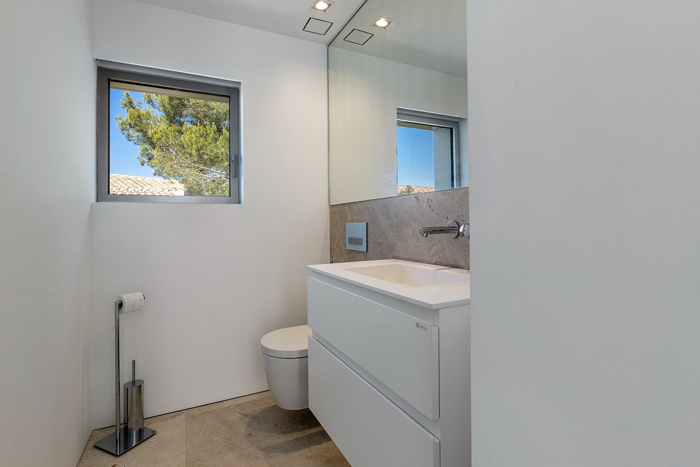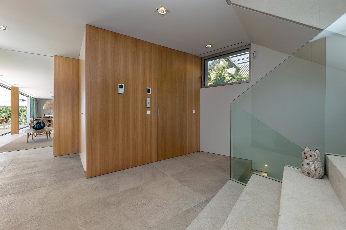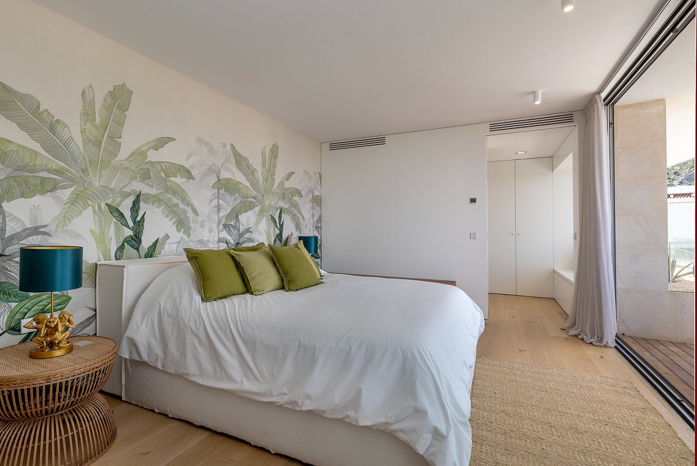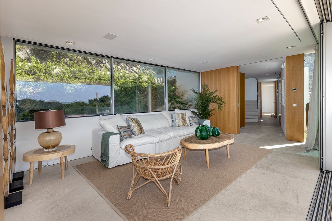 Im Erdgeschoss können Sommerabende am Pool genossen werden. Direkt anschliessend das Wohnzimmer mit offener Küche. Die Ausrichtung ist nach Westen zum Sonnenuntergang. Auf der gleichen Etage befindet sich ein geräumiges Schlafzimmer mit Badezimmer. Zu den Ausstattungsmerkmalen dieses exklusiven Zuhauses gehören Klimaanlage, Fußbodenheizung, doppelt verglaste Fenster sowie Naturstein- und Eichenböden.
