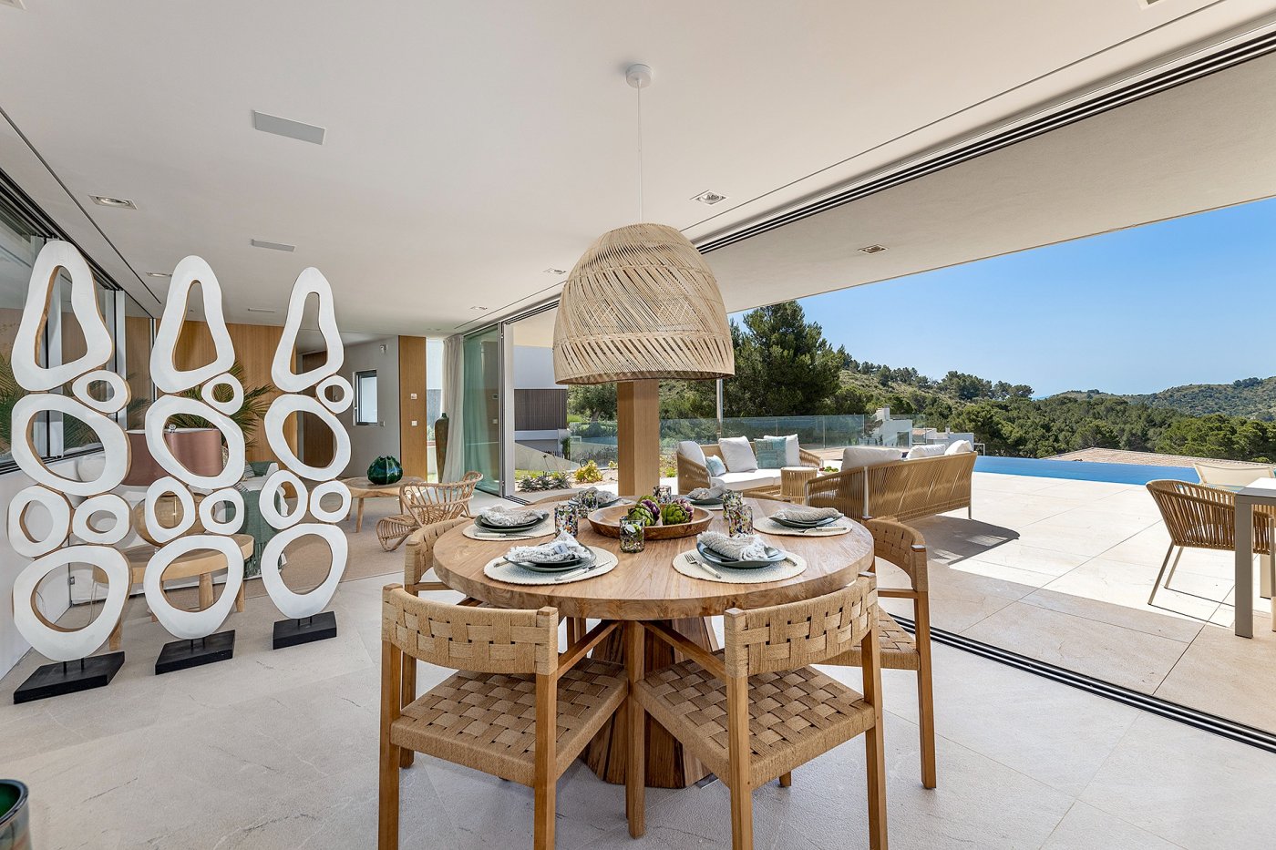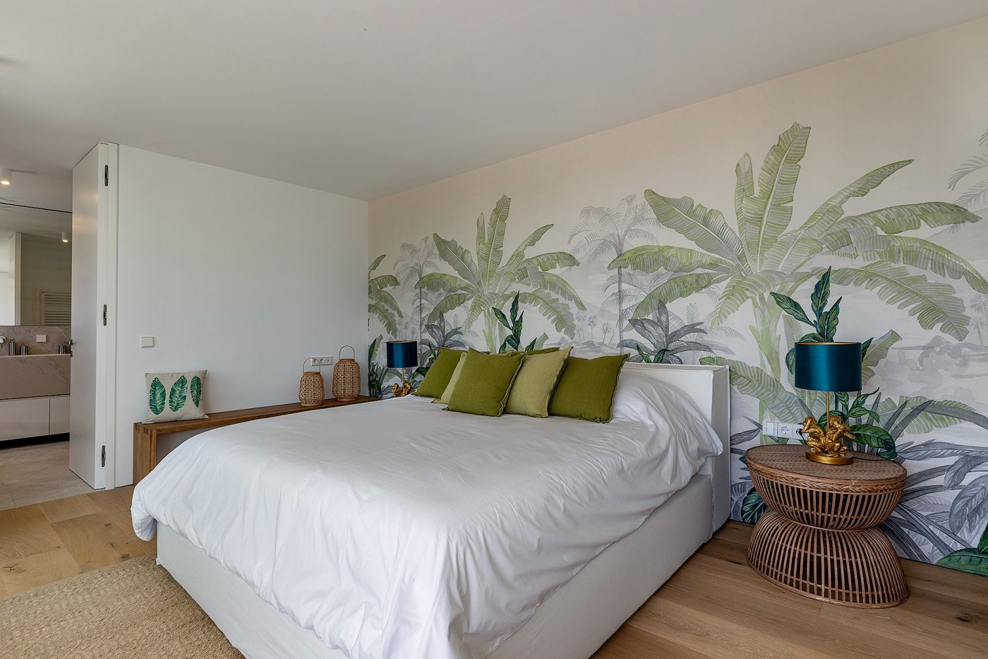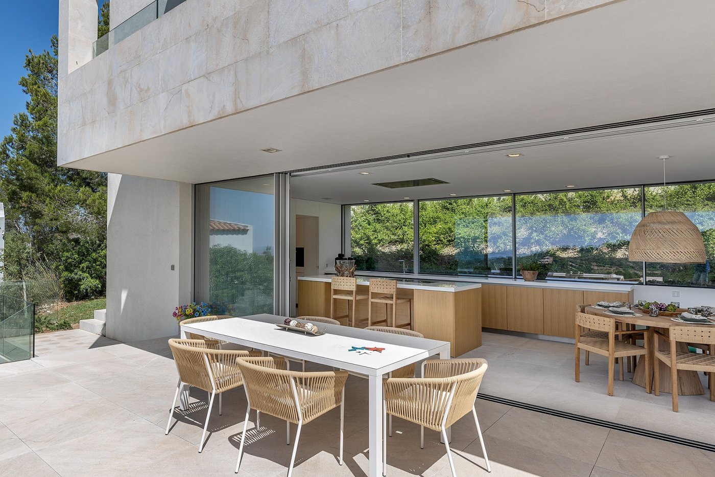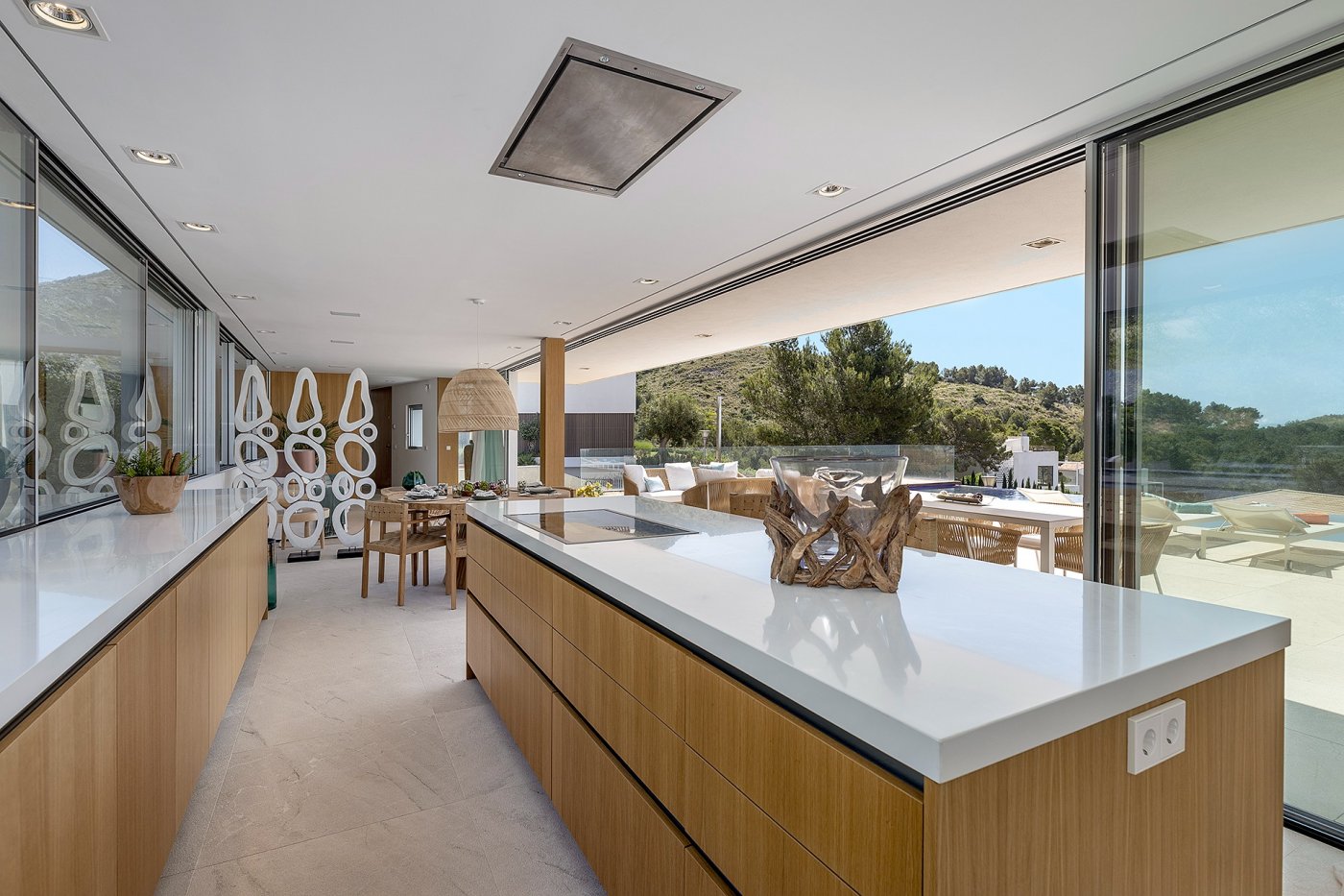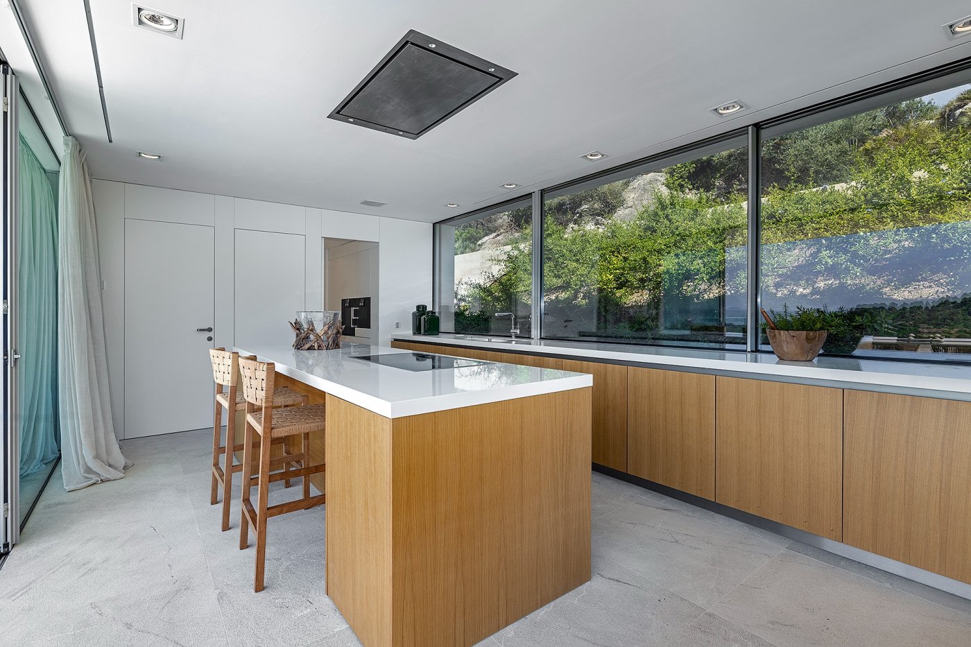 Im Erdgeschoss können Sommerabende am Pool genossen werden. Direkt anschliessend das Wohnzimmer mit offener Küche. Die Ausrichtung ist nach Westen zum Sonnenuntergang. Auf der gleichen Etage befindet sich ein geräumiges Schlafzimmer mit Badezimmer. Zu den Ausstattungsmerkmalen dieses exklusiven Zuhauses gehören Klimaanlage, Fußbodenheizung, doppelt verglaste Fenster sowie Naturstein- und Eichenböden.