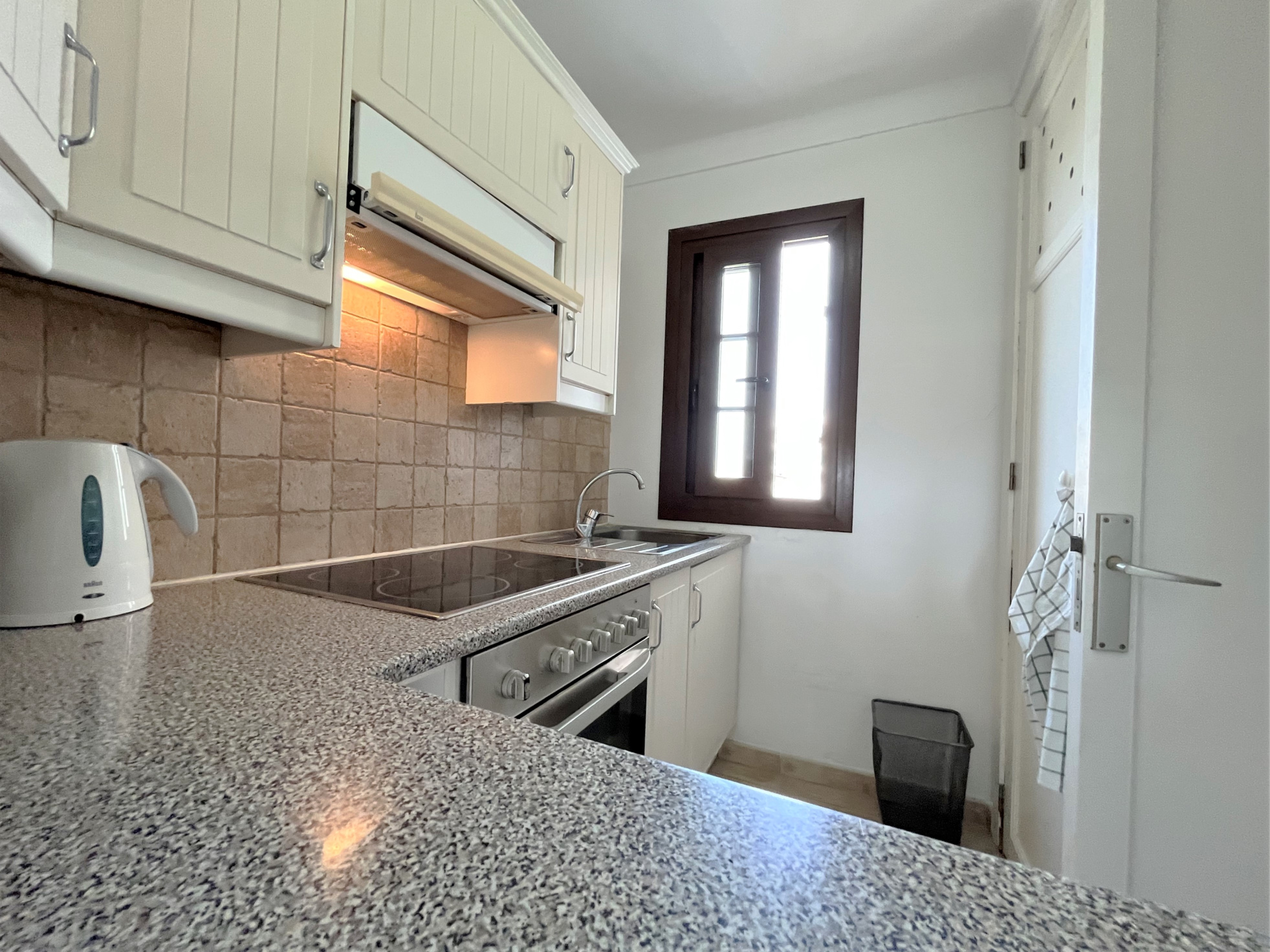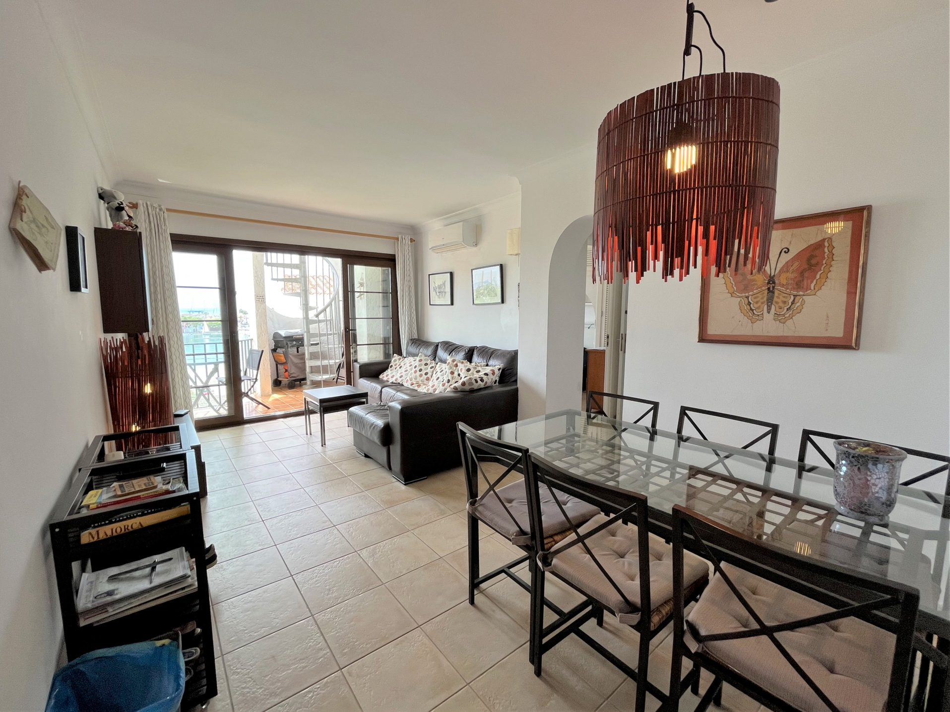 Diese schöne Wohnung liegt in einer sehr nachgefragten und gepflegten Anlage mit Gemeinschaftspool. Direkt am Hafen gelegen in erster Meereslinie mit unvergleichlichen Ausblick von der kleinen Terrasse vor dem Wohnzimmer aus mit Wendeltreppenaufgang zur Dachterrasse, die einen wunderbaren Chill-out Bereich beherbergen könnte. Ansonsten hat die Wohnung eine Fläche von etwa 65 m2 mit zwei Schlafzimmern, Bad, Toilette, Küche und Wohn-/Esszimmer.