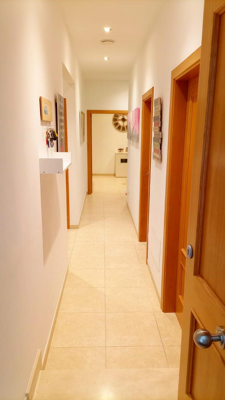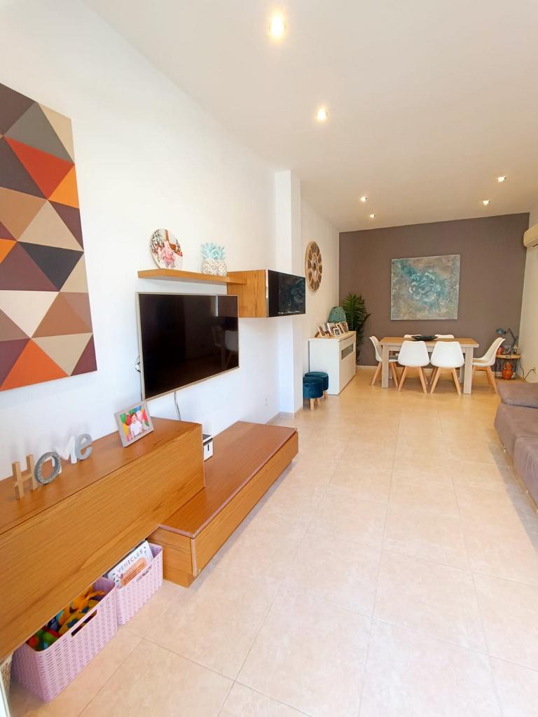 Moderne Erdgeschosswohnung von fast 100 m² Wohnfläche mit grosszügigem Parkplatz (Auto und Motorrad) und Abstellraum. Diese Wohnung verfügt über 3 Schlafzimmer und 2 Bäder, eines davon en suite, eines der Schlafzimmer hat eine Ankleide und Zugang zu einem kleinen Innenhof. Alle Schlafzimmer sind mit Einbauschränken ausgestattet. Die unabhängige Küche ist möbliert und ausgestattet. Sie verfügt auch über eine Waschküche. Die Wohnung hat ein geräumiges Wohn-Esszimmer mit direktem Zugang zur Straße.