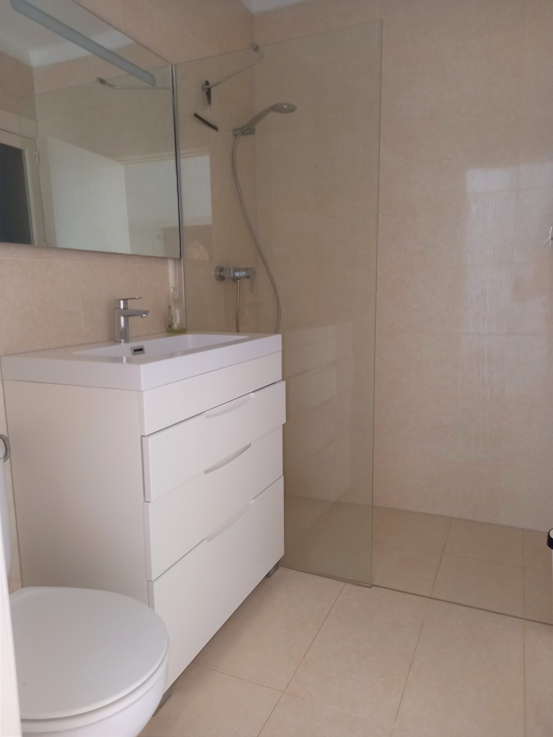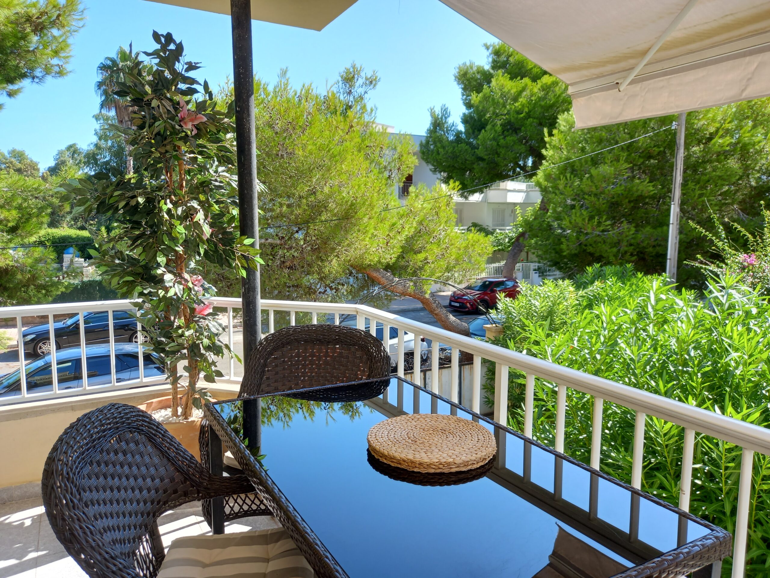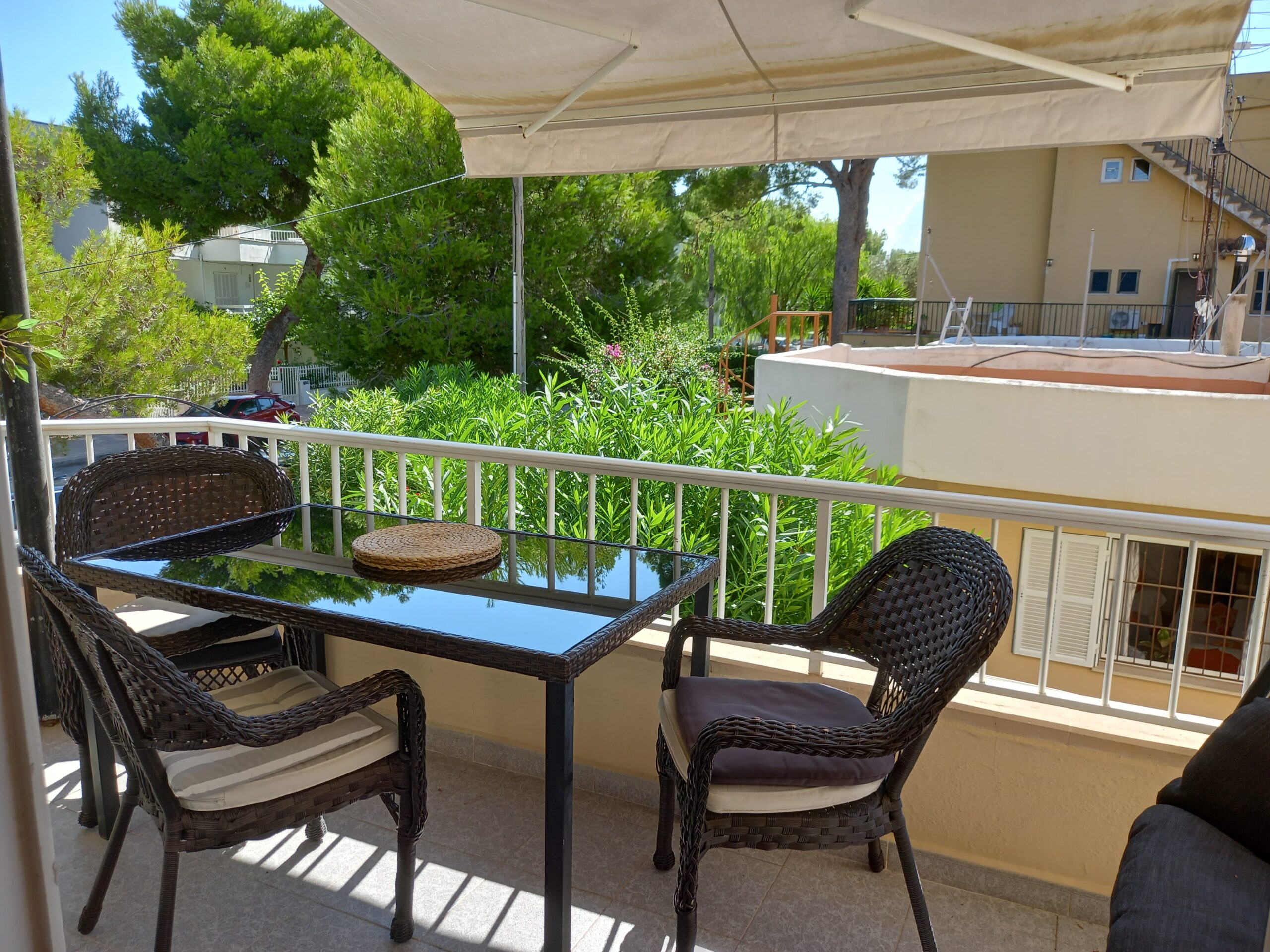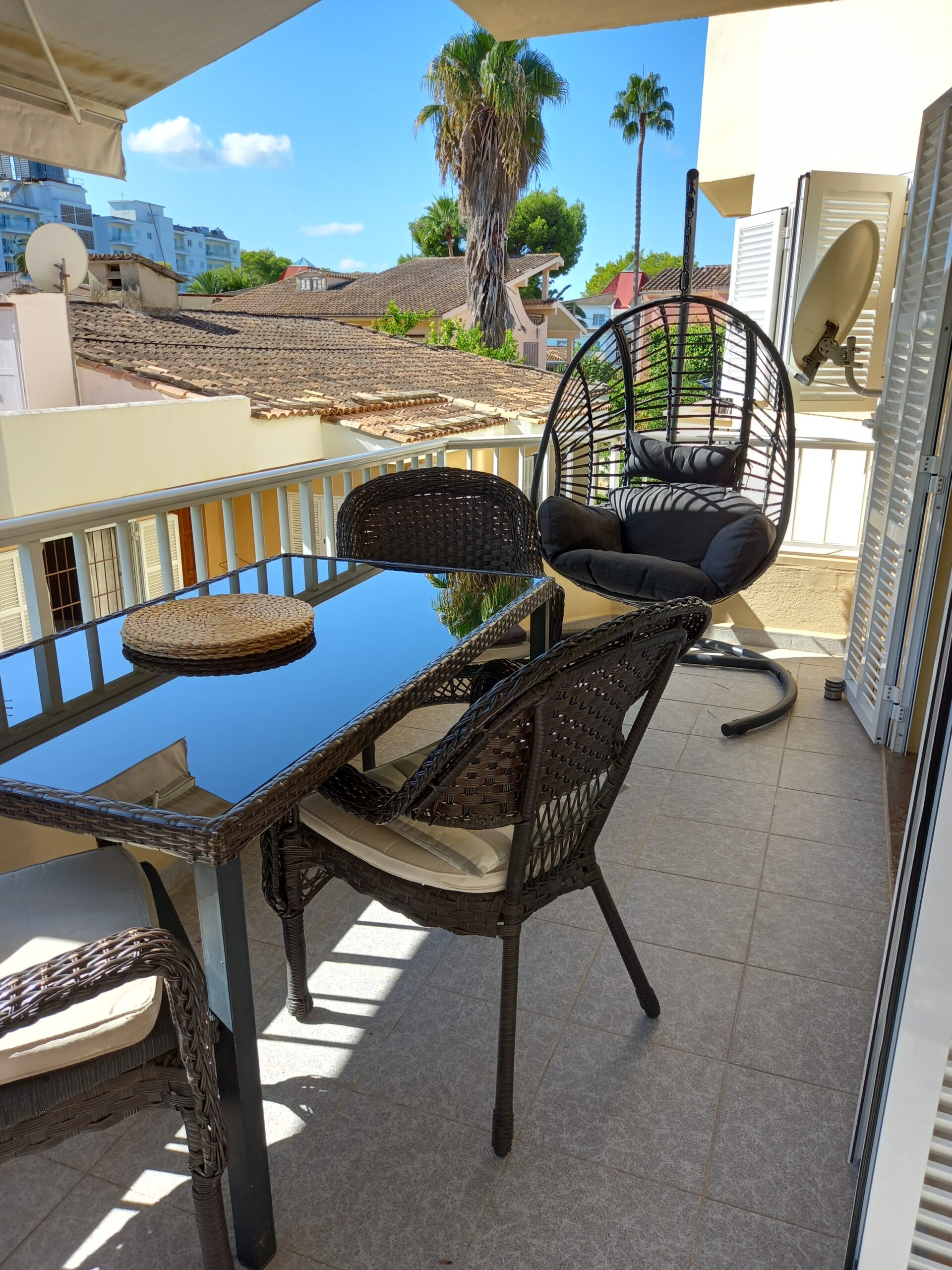 Die Wohnung besteht aus 3 Schlafzimmern, 2 schönen Duschbädern, einem Wohnzimmer mit Kamin und Austritt von 2 Seiten auf die Terrasse, von welchen man sogar etwas Meerblick hat. Anschliessend liegt die Küche, auch mit kleiner Terrasse und über einen Flur gelangt man in die Schlafräume und Bäder. Ausgestattet mit Klimaanlage, elektronischer Heizung wird die Wohnung möbliert verkauft.